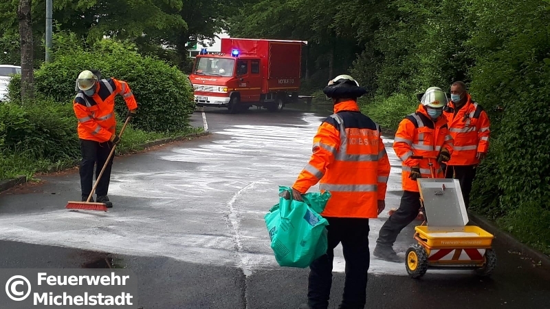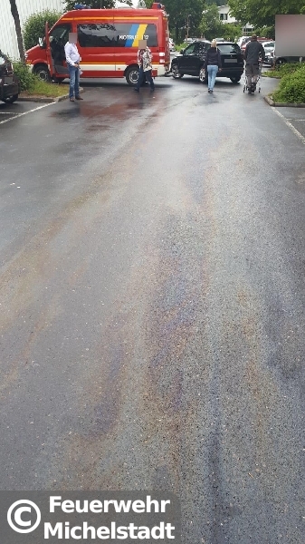 Gemeldet war eine Ölspur in der Abfahrt B45 / Walther-Rathenau-Allee. Nach der Erkundung bestätigte sich die Lage. Zudem waren große Teile eines Parkplatzes betroffen, weshalb die Feuerwehr Steinbach nachalarmiert wurde.