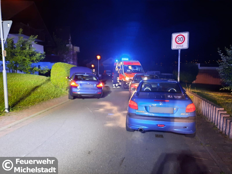 Eine Person prallte mit ihrem PKW gegen 2 geparkte PKWs. Durch den E-Call des Unfallfahrzeuges wurde der automatische Notruf veranlasst. Beim Eintreffen an der Einsatzstelle hatte die Person die Unfallstelle verlassen. Wir leuchteten die Einsatzstelle aus und nahmen auslaufende Betriebsmittel auf. Nachdem keine Gefahr mehr von dem Fahrzeug ausging wurde der Einsatz der Polizei übergeben.