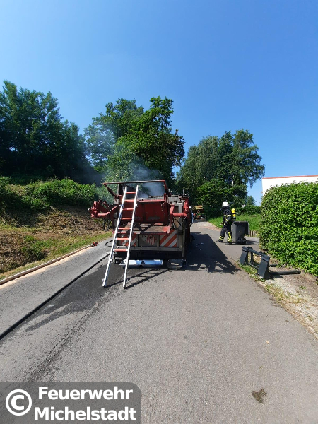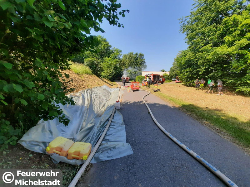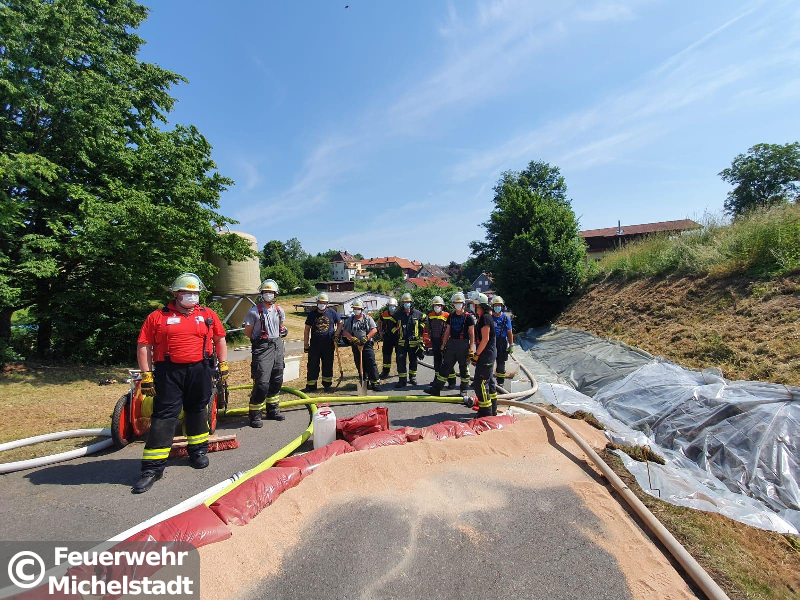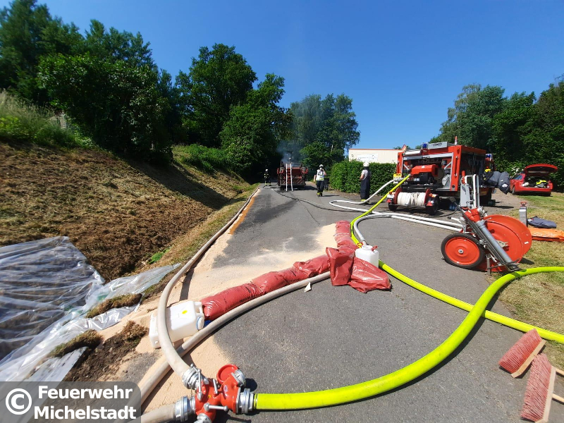 Nachdem der Behälter vollständig abgelöscht war, wurde er von einem Trägerfahrzeug aufgesattelt und zu einer nahegelegenen Deponie gebracht, welche über einen Ölabscheider verfügt. Dort wurden die Nachlöscharbeiten durchgeführt.