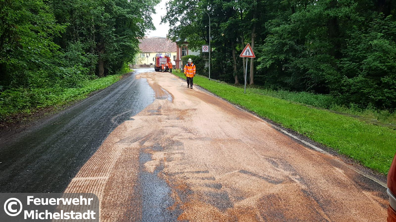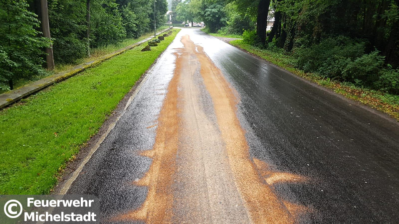 Aus einem Fahrzeug ist Kraftstoff ausgelaufen. Wir streuten die Spur in der Walther-Rathenau-Allee bis zur B47 ab.