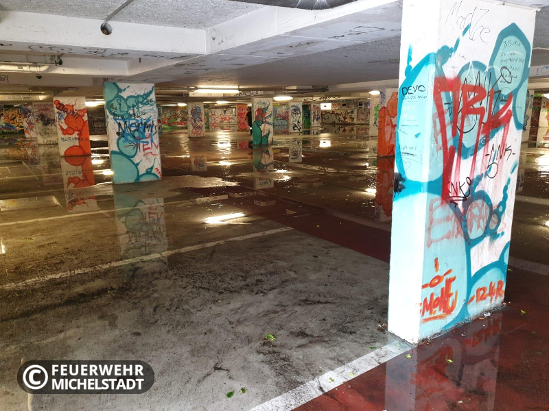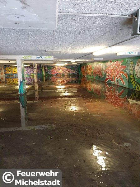 In der Tiefgarage stand Wasser. Wir saugten das Wasser mit Hilfe von Tauchpumpen ab.