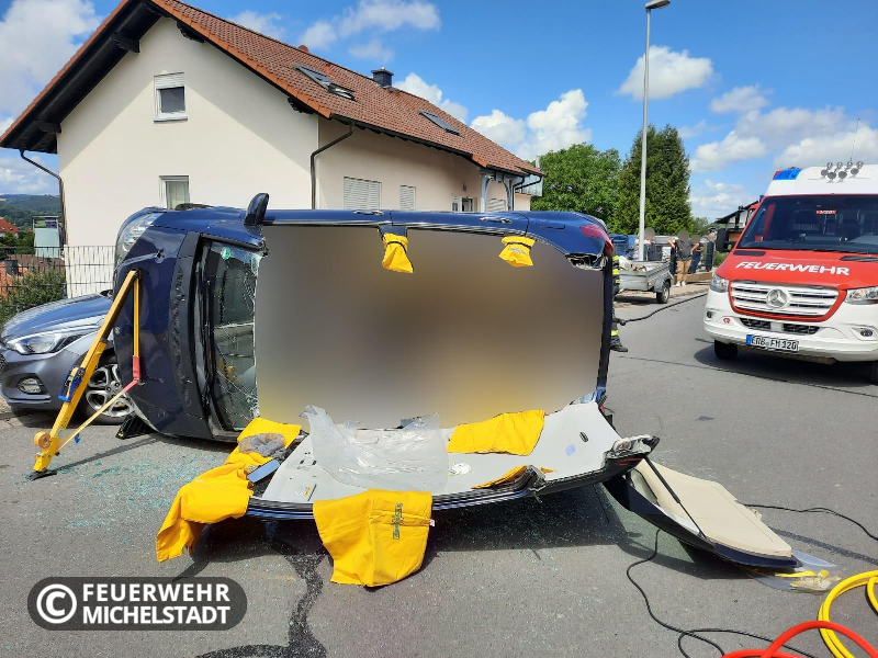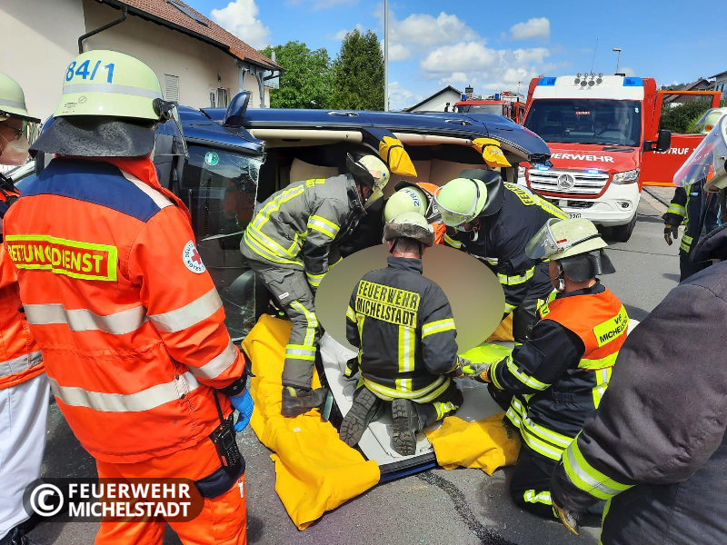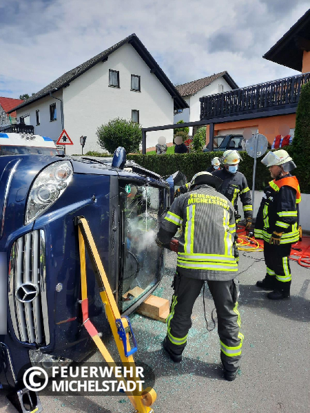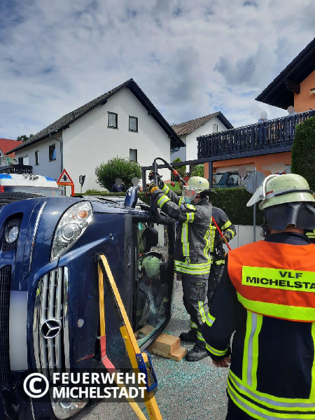 Ein PKW prallte seitlich auf ein geparktes Fahrzeug. Durch den Aufprall kippte der PKW auf die Fahrerseite. Im PKW befanden sich zwei Personen, wobei eine Person von Ersthelfern aus dem Fahrzeug gerettet wurde. Die zweite Person wurde durch uns mittels hydraulischen Rettungsgeräten aus dem Fahrzeug befreit und an den Rettungsdienst übergeben. Während des Einsatzes musste der Stadtring voll gesperrt werden.