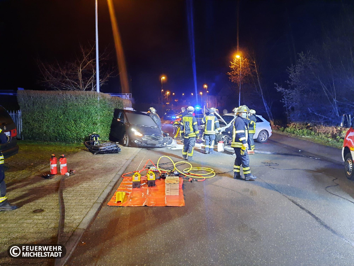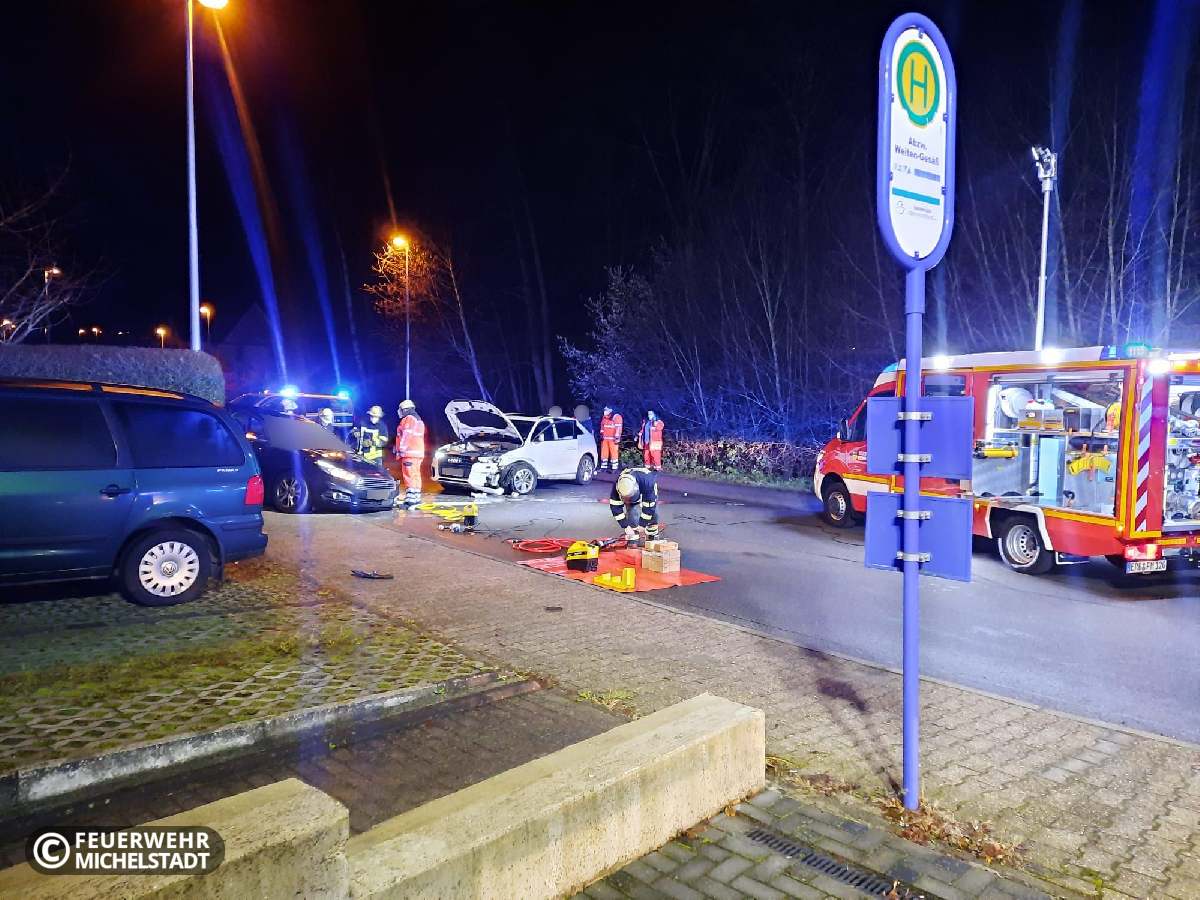 Auf dem Stadtring ereignete sich ein Verkehrsunfall zwischen zwei PKW. Dabei wurde eine Person in ihrem Fahrzeug eingeschlossen. Wir stellten den Brandschutz sicher, entfernten die Tür des Wagens mit hydraulischen Rettungsgeräten und unterstützten anschließend den Rettungsdienst bei der schonenden Rettung der Person.