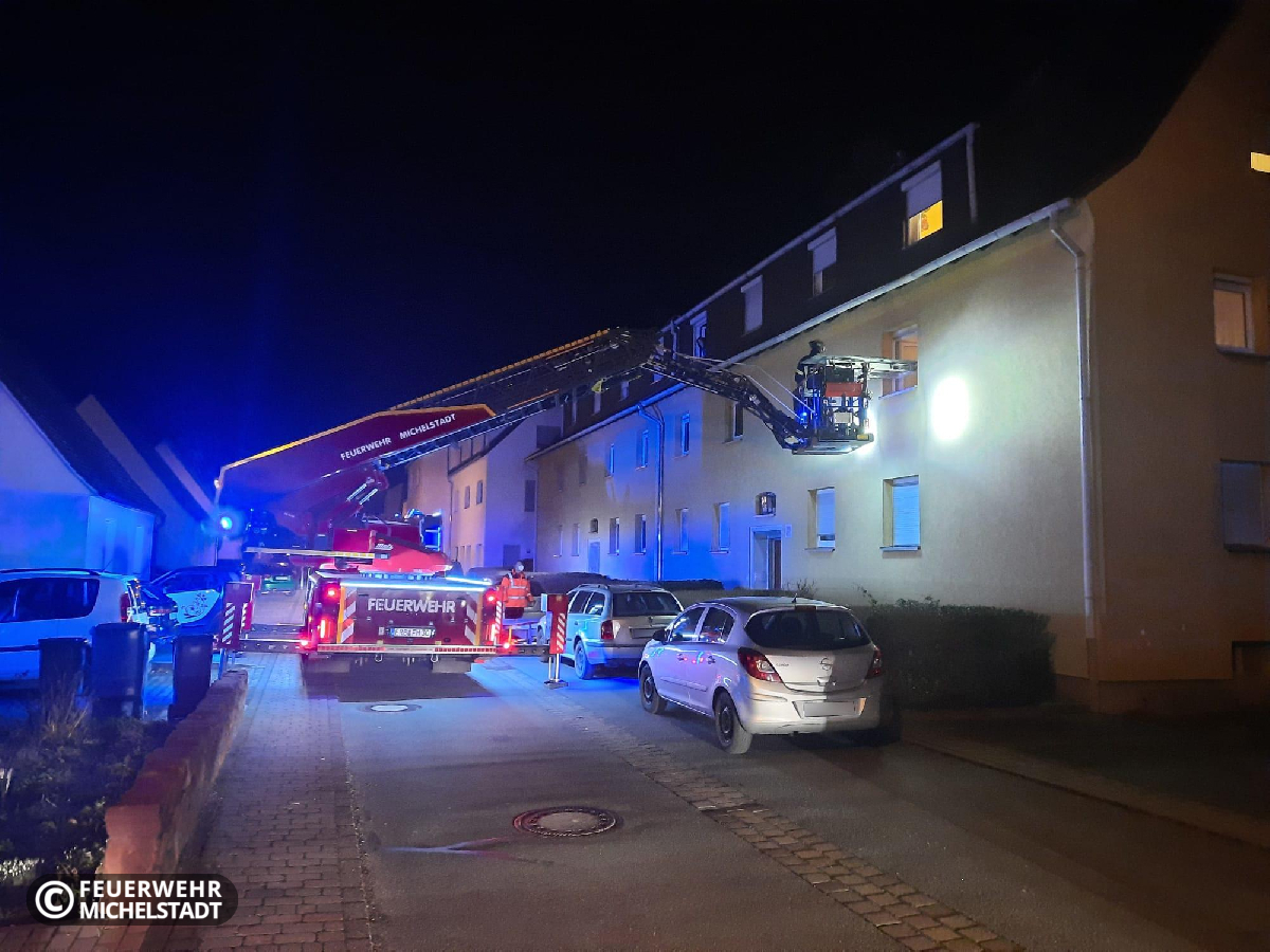 Wir unterstützen den Rettungsdienst bei einer Personenrettung aus dem 1. OG mithilfe der Drehleiter.
