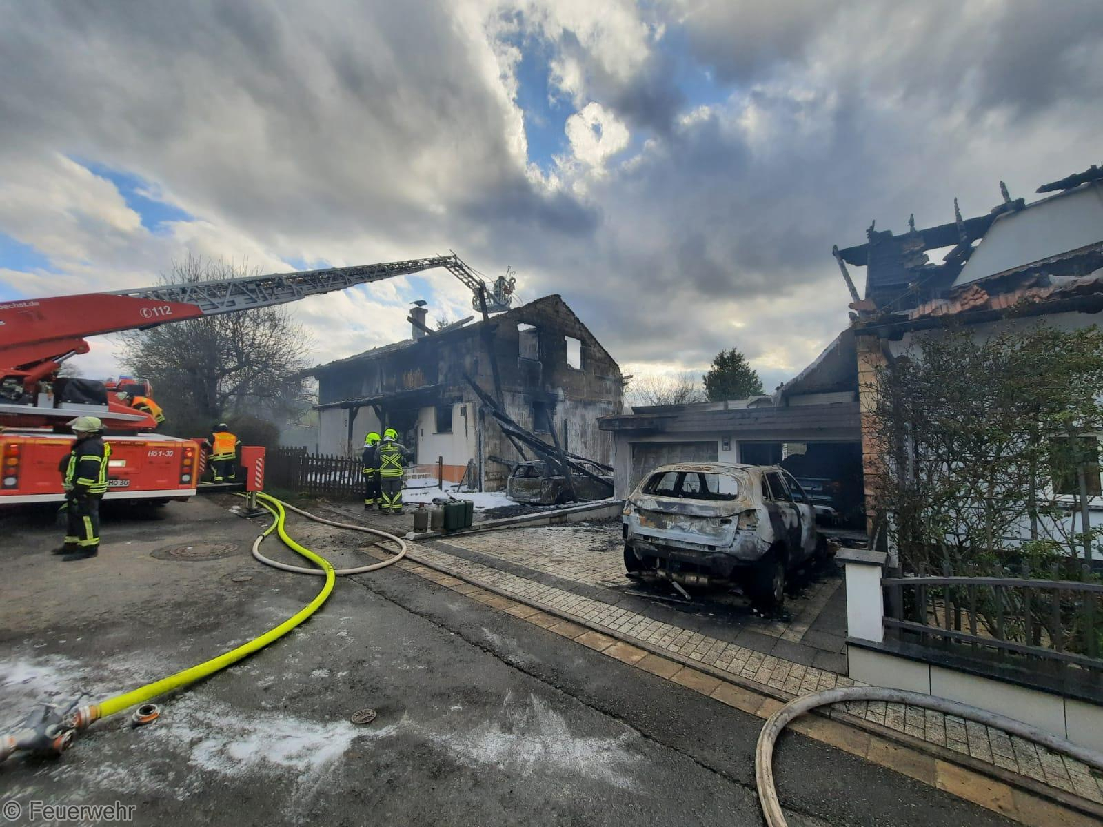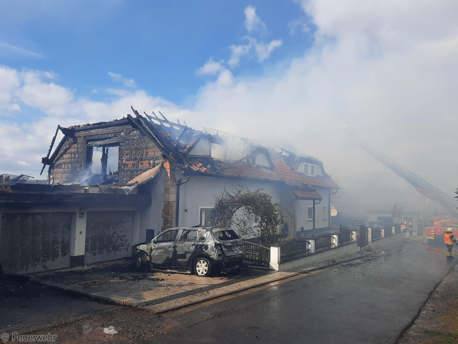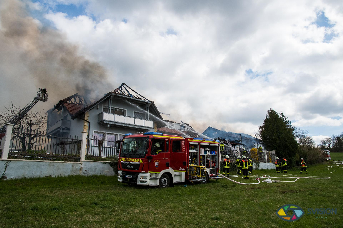 Im Einsatzverlauf brannten die beiden Wohngebäude trotz massiver Nachalarmierungen mehrerer Feuerwehren aus dem Kreisgebiet komplett aus.