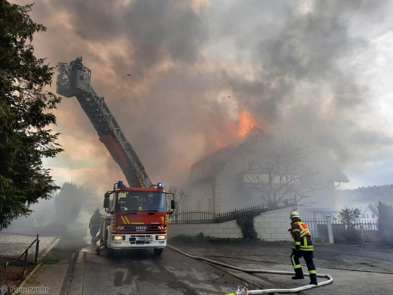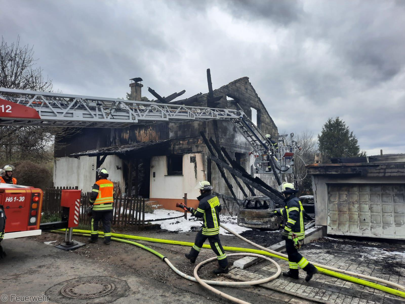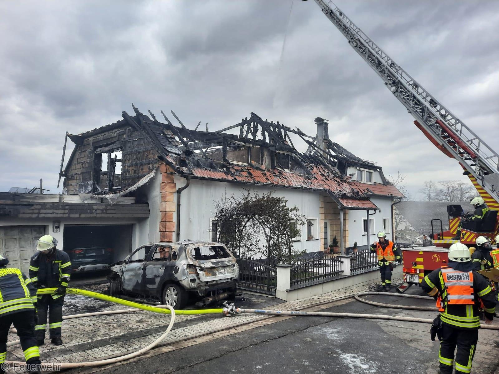 Im Einsatzverlauf brannten die beiden Wohngebäude trotz massiver Nachalarmierungen mehrerer Feuerwehren aus dem Kreisgebiet komplett aus.