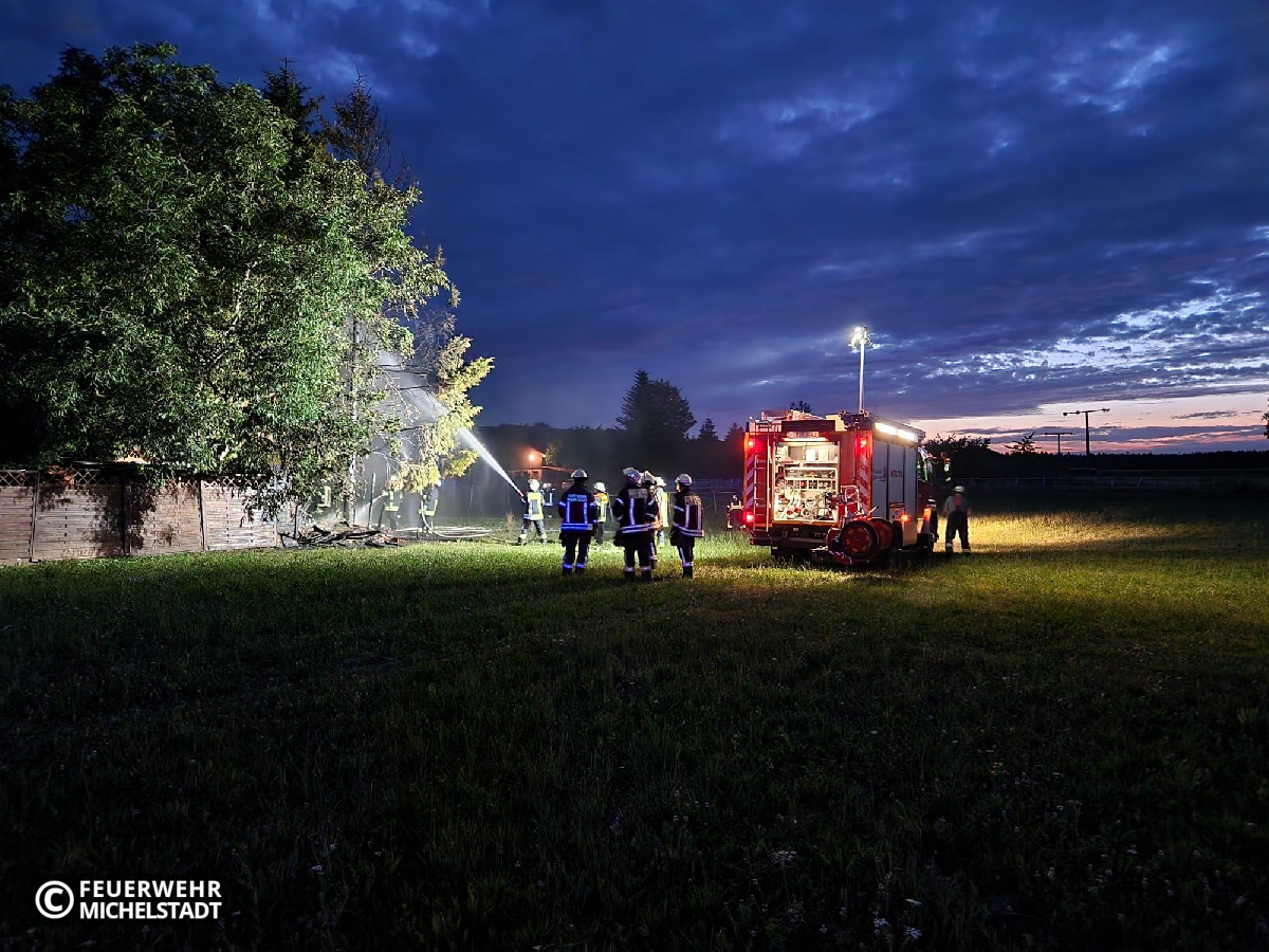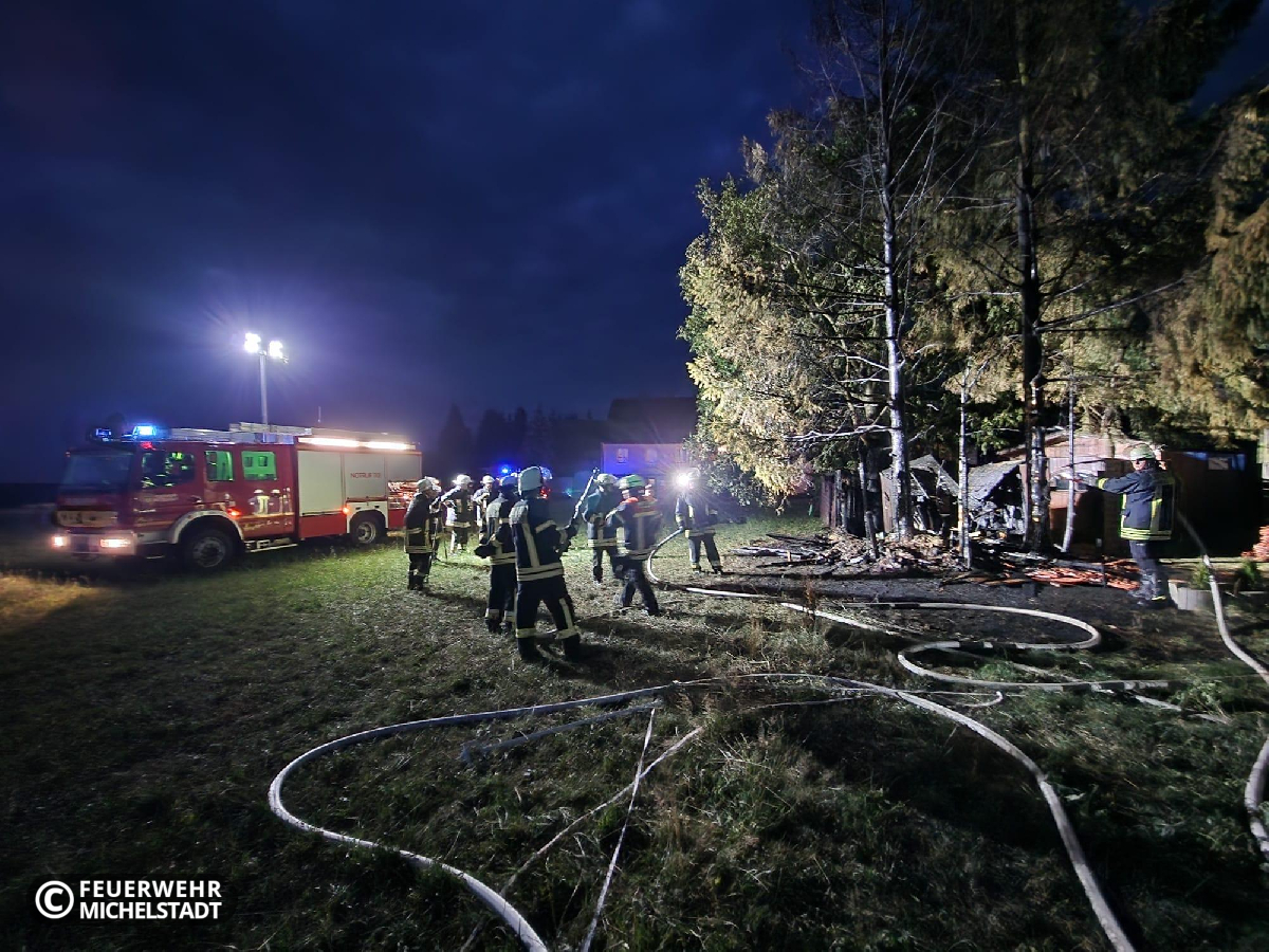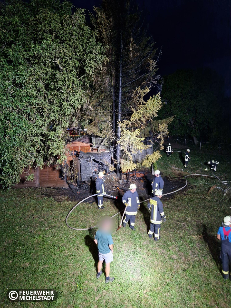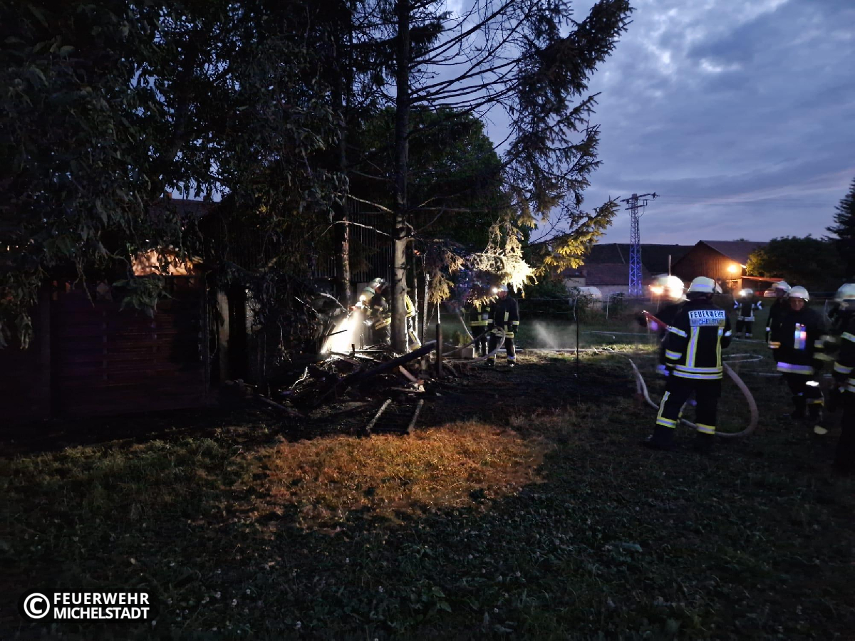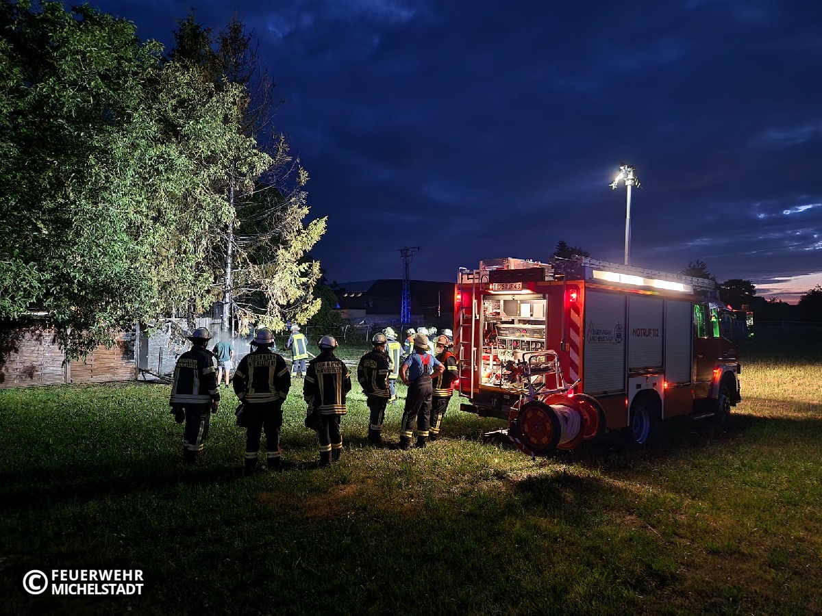 Bei Eintreffen der Feuerwehr Würzberg brannte eine Gartenhütte mit Hecke sowie mehrere Bäume. Der Brand wurde mit 2 C-Rohren durch die Kameraden aus Würzberg abgelöscht. Wir unterstützen bei der Ausleuchtung der Einsatzstelle und beim Rückbau der Gerätschaften. Anschließend kontrollierten wir den betroffenen Bereich mit der Wärmebildkamera auf Glutnester.
