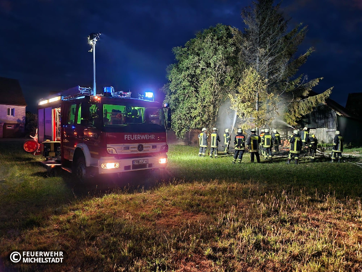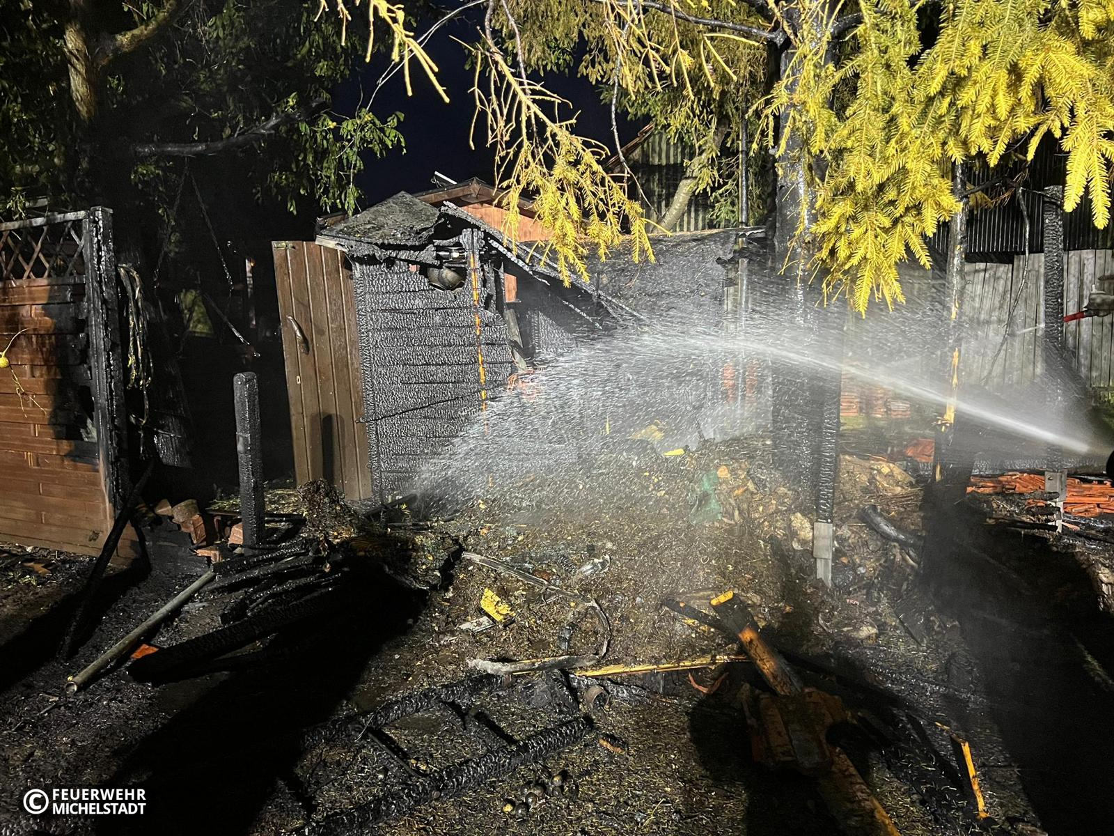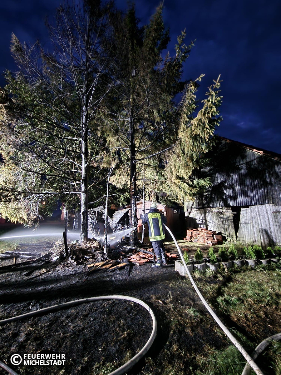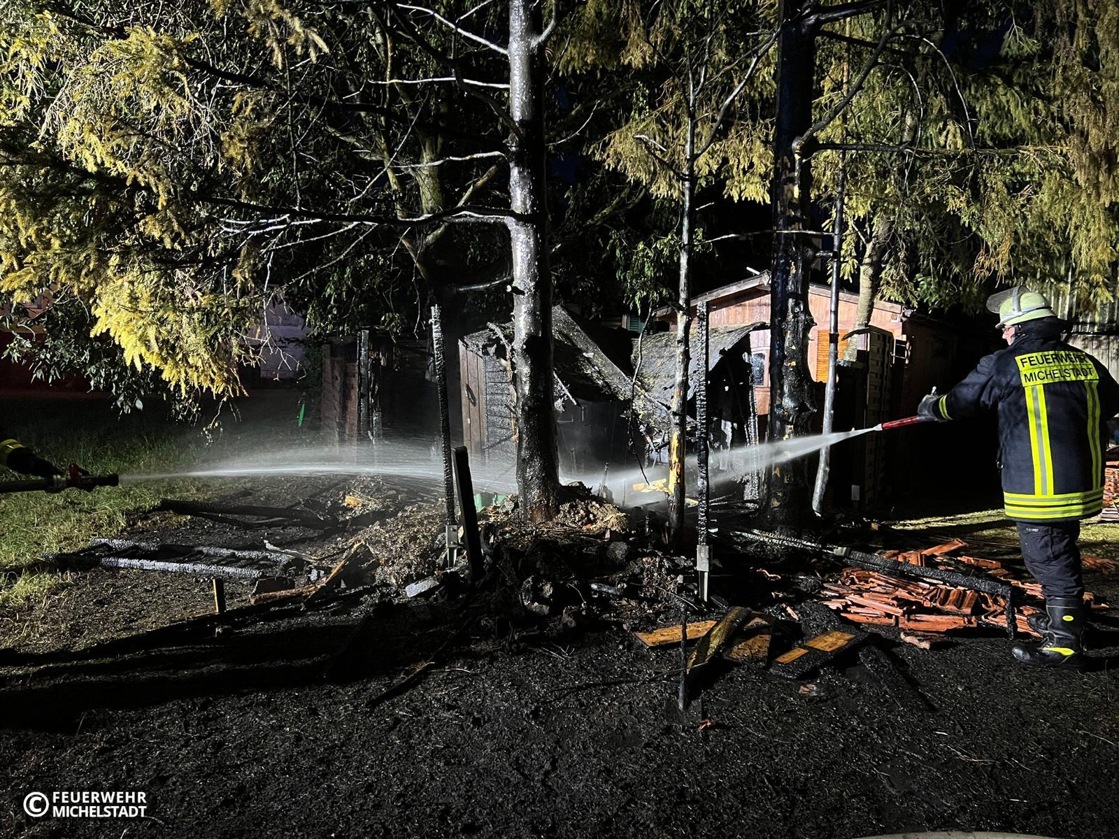 Bei Eintreffen der Feuerwehr Würzberg brannte eine Gartenhütte mit Hecke sowie mehrere Bäume. Der Brand wurde mit 2 C-Rohren durch die Kameraden aus Würzberg abgelöscht. Wir unterstützen bei der Ausleuchtung der Einsatzstelle und beim Rückbau der Gerätschaften. Anschließend kontrollierten wir den betroffenen Bereich mit der Wärmebildkamera auf Glutnester.