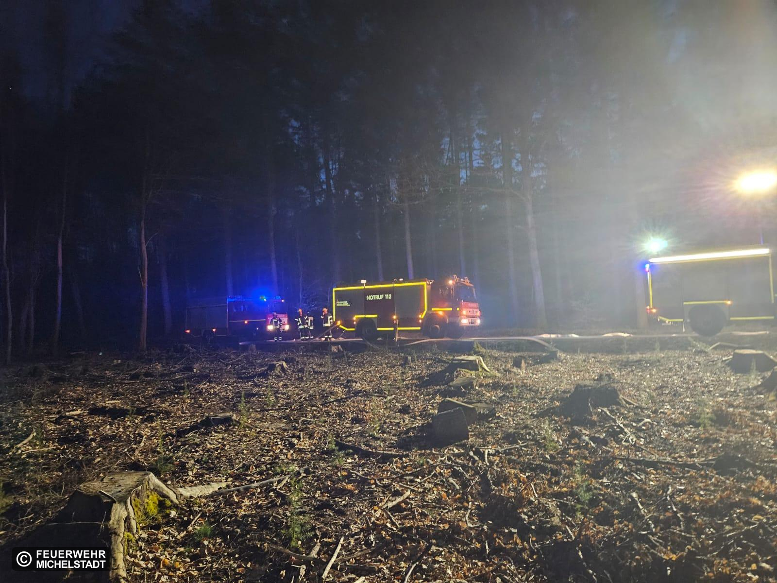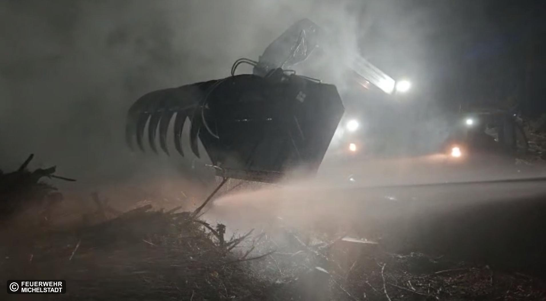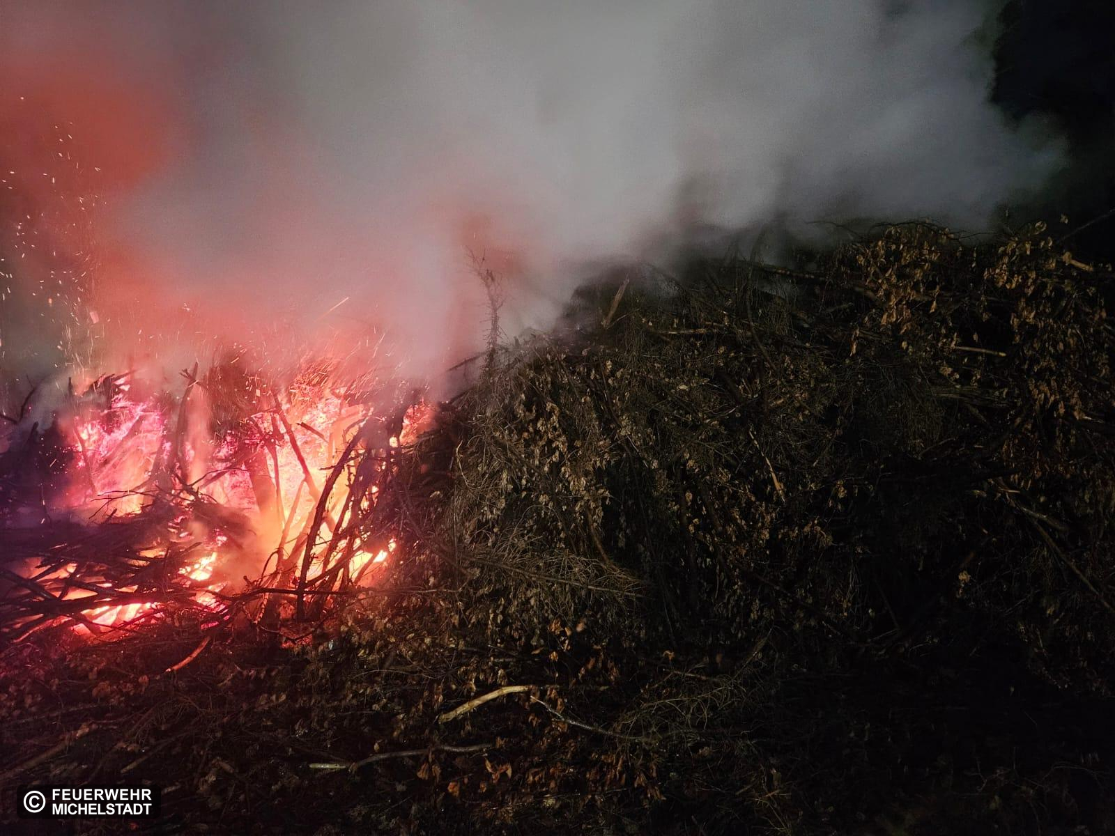 Es brannte ein größerer Haufen Reisig im Wald. Aufgrund der hohen Energie innerhalb des Haufens konnten wir diesen nicht ohne Weiteres ablöschen. Daher ließen wir ihn kontrolliert niederbrennen, bis ein Teleskoplader vor Ort war. Gemeinsam mit den Kameraden aus Vielbrunn löschten wir den Haufen Stück für Stück ab, während der Teleskoplader ihn auseinander zog.