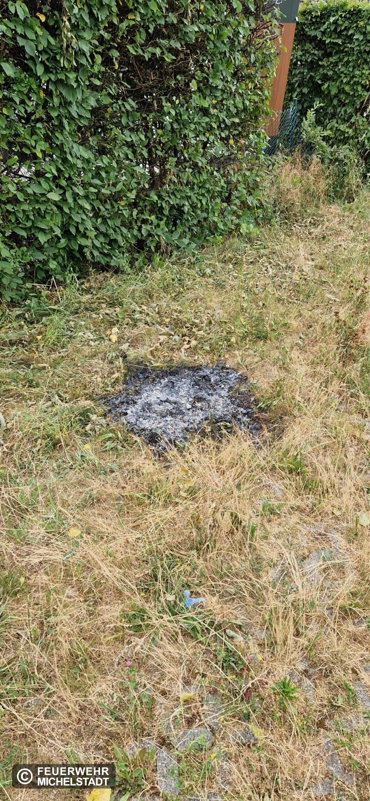 Ein etwa 1 Quadratmeter großes Stück Wiese brannte. Wir bewässerten den Bereich mittels Schnellangriff.