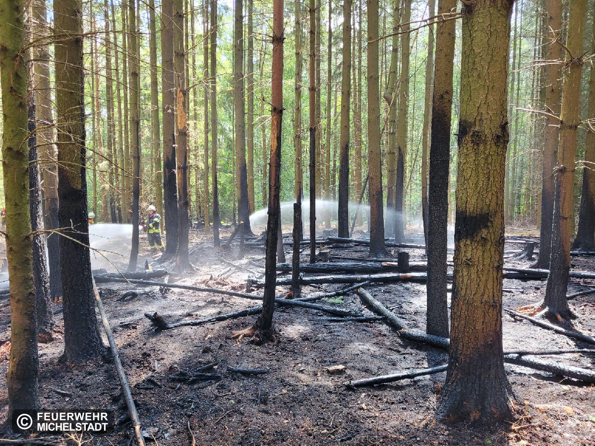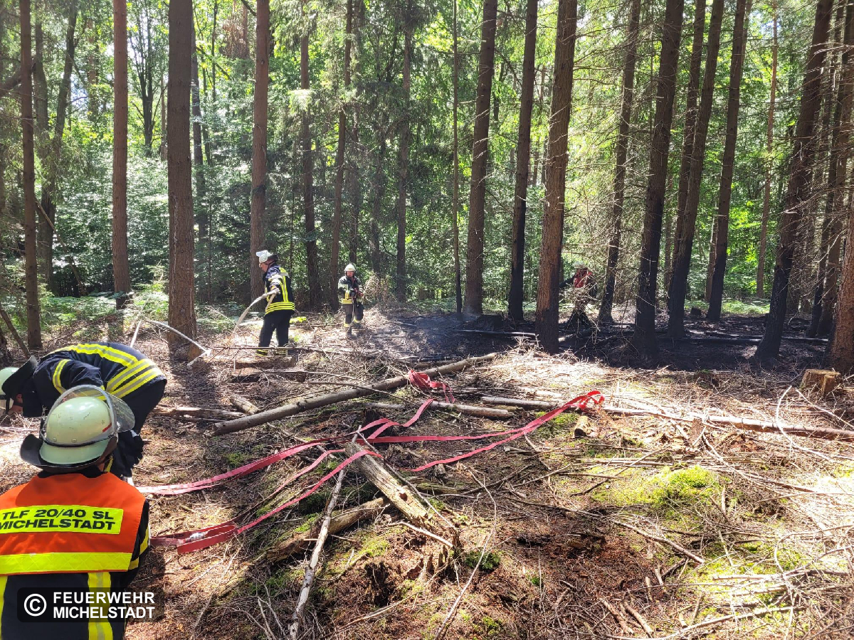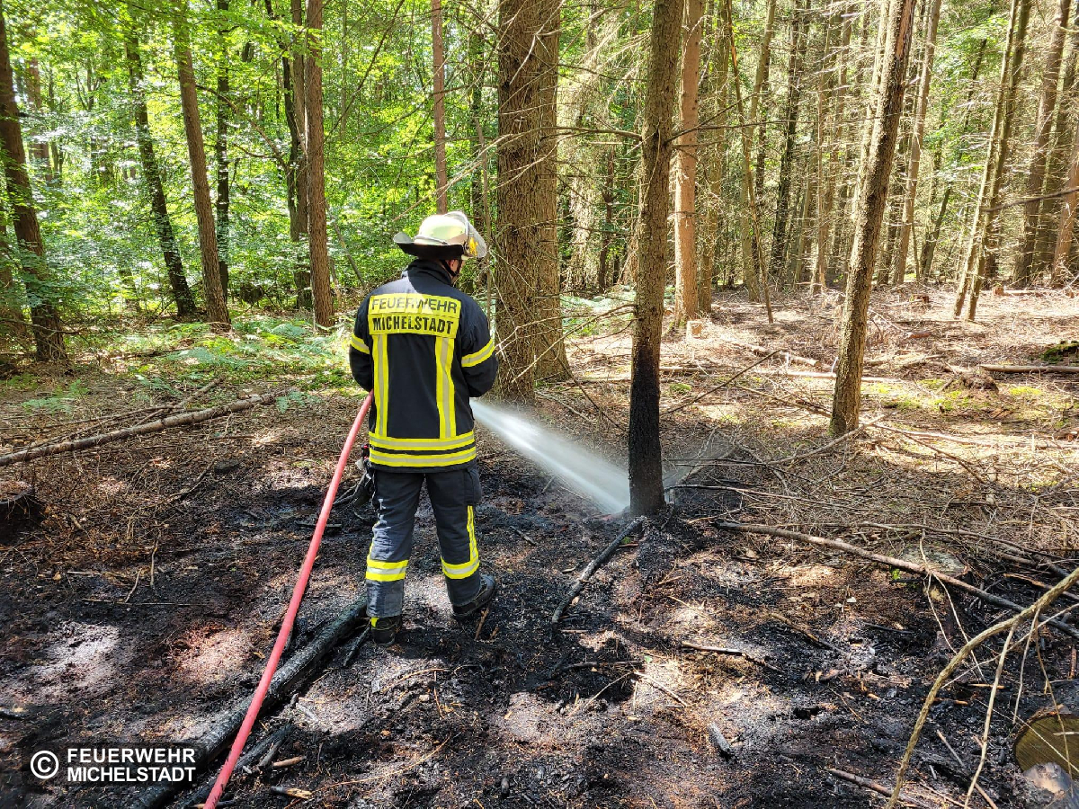 An der Einsatzstelle vom 04.07. mussten Nachlöscharbeiten durchgeführt werden. Der Boden wurde mit Werkzeug gelockert und die Glutnester abgelöscht.