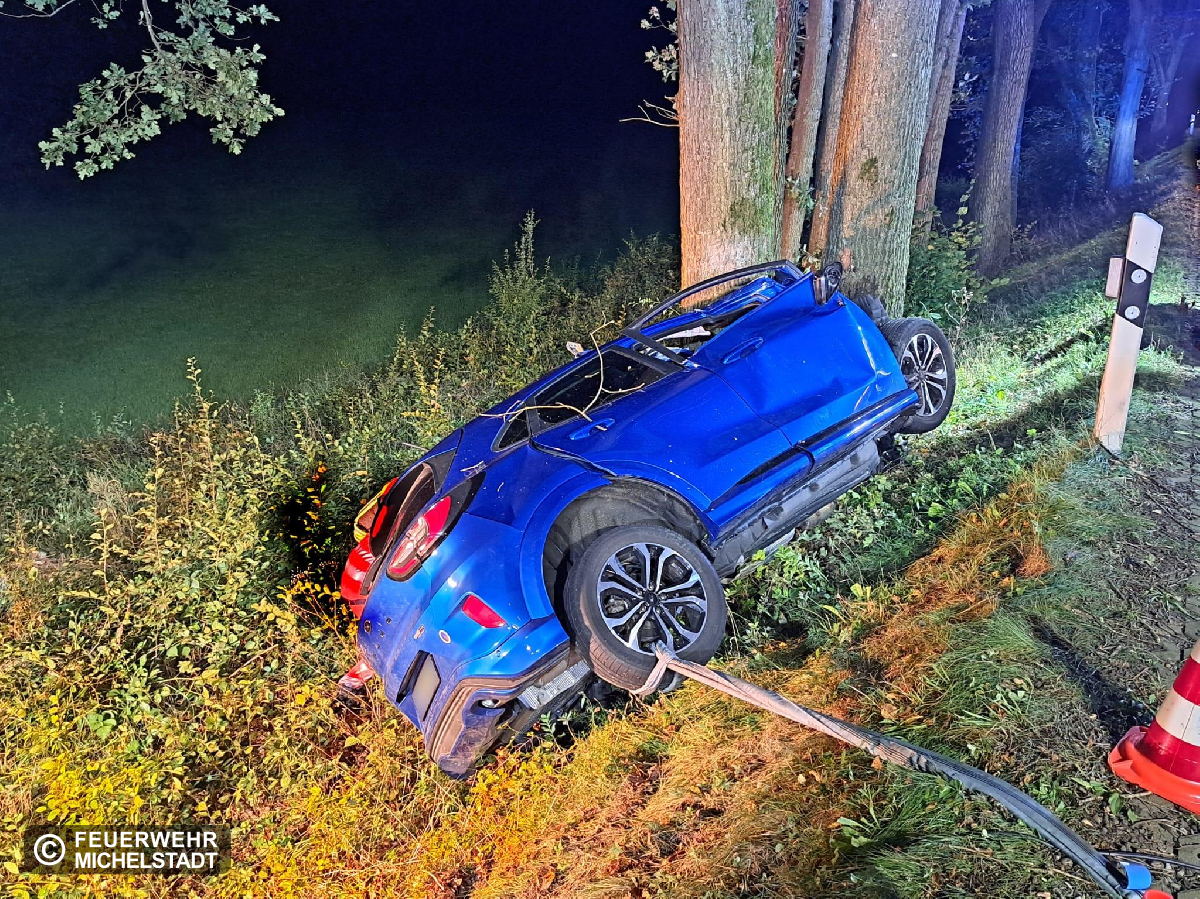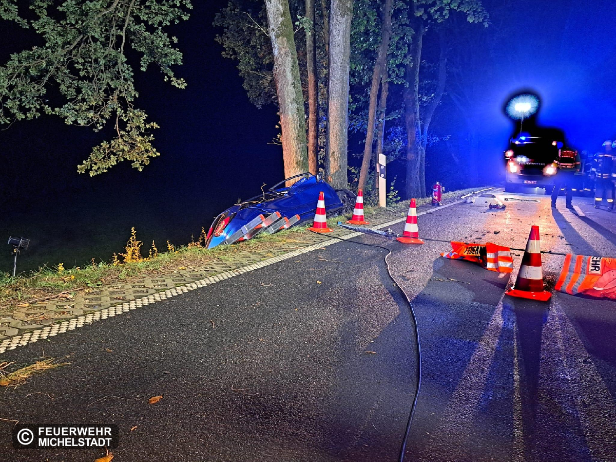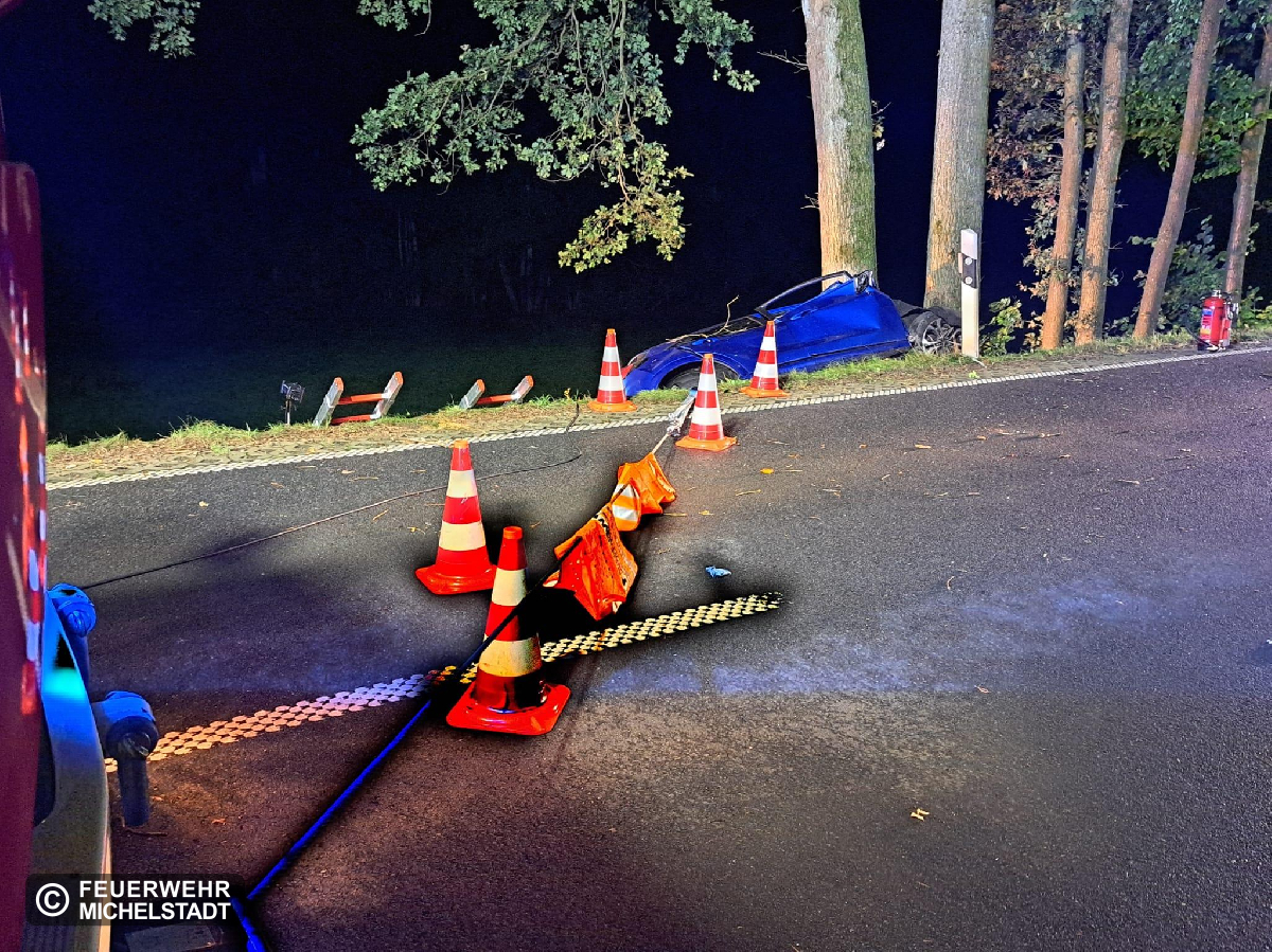 Auf der B47 in Fahrtrichtung Rehbach ereignete sich ein Auffahrunfall eines PKW frontal gegen einen Baum. Beim Eintreffen war die betroffene Person leider bereits verstorben. Wir sicherten den PKW gegen Abrutschen und stellten den Brandschutz sicher. Außerdem leuchteten wir die Einsatzstelle aus und nahmen ausgelaufene Betriebsmittel auf.