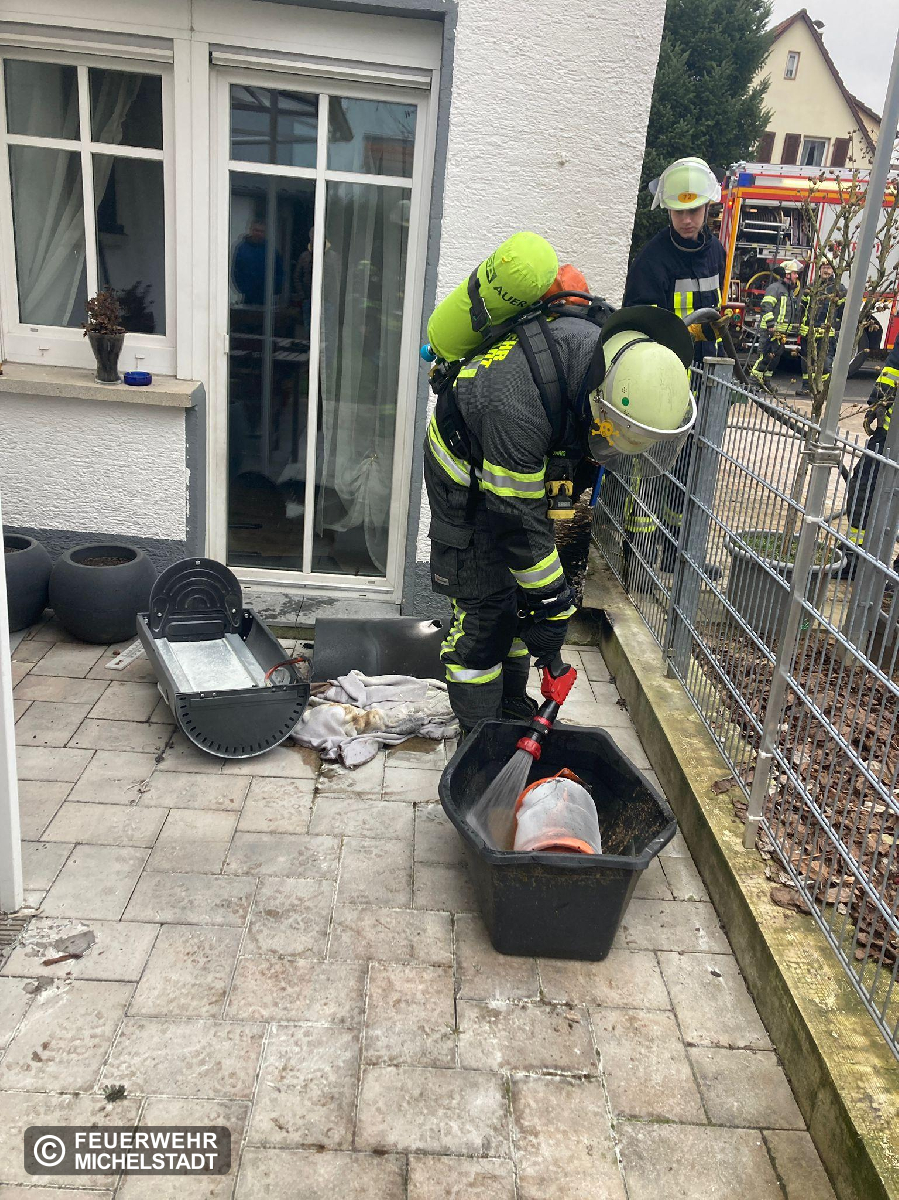 Gemeldet war eine Stichflamme aus dem Erdgeschoss eines Mehrfamilienhauses. Vor Ort wurde auf der Terrasse eine bereits abgelöschte Gasflasche, die allerdings noch abströmte, vorgefunden. Die Gasflasche wurde geschlossen und zur Kühlung in eine Wanne mit Wasser gelegt. Die Fassade wurde mittels Wärmebildkamera, und die Wohnräume im Erdgeschoss mit einem Mehrgaswarngerät ohne Feststellung einer Gefahr überprüft. Ein schwelender Blumenkasten wurde mit dem Schnellangriff abgelöscht. Die Kameraden aus Erbach verblieben im Bereitstellungsraum und mussten nicht eingesetzt werden.
