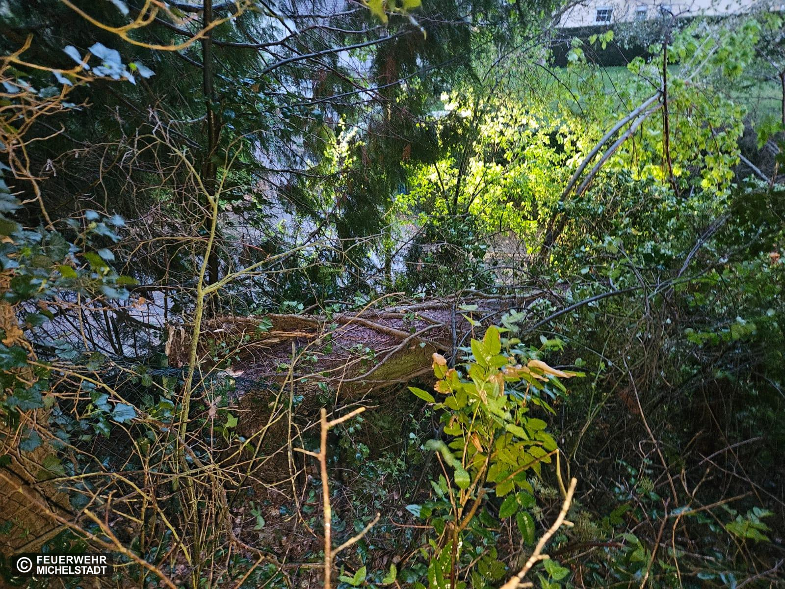 Auf dem Kreuzweg lag ein Baum über der Straße. Die Eigentümerin hatte bereits eine Fachfirma verständigt. Die Einsatzstelle wurde bis zum Eintreffen der Fachfirma abgesichert.