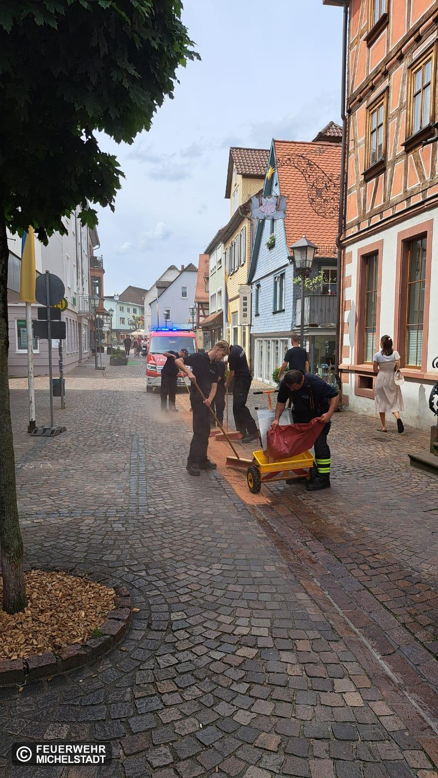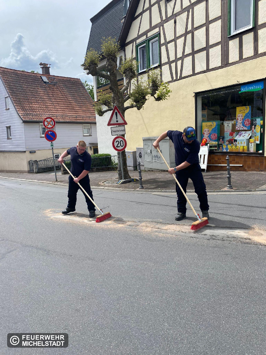 Nach dem Blumenkorso wurde in der Braunstraße eine Ölverschmutzung festgestellt. Diese wurde abgesichert und abgestreut.