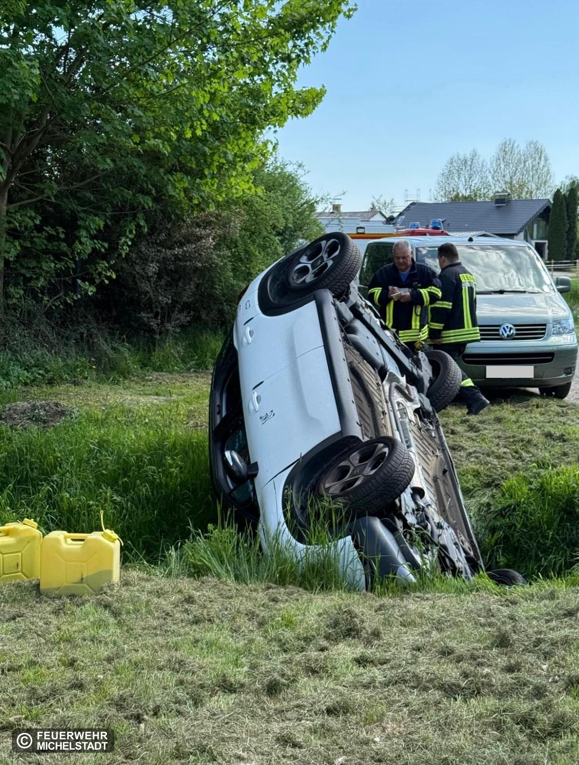 Bei einem Einparkversuch eines PKW´s auf einer Wiese an der Mossauer Straße rutschte dieser versehentlich in einen Entwässerungsgraben und überschlug sich. Da beim Eintreffen an der Einsatzstelle sich bereits alle Personen eigenhändig aus dem Fahrzeug retten konnten, hatten wir die Aufgabe auslaufende Betriebsstoffe im Wasser mittels Ecoperl zu binden und einen provisorischen Rückstau zu bauen, um den Abfluss von restlichen im Wasser übrig gebliebenen Betriebsstoffen in das Abwassersystem zu verhindern. Anschließend wurde die Untere Wasserbehörde über den Vorfall informiert und das Fahrzeug vom ADAC von der Unfallstelle abgeschleppt.