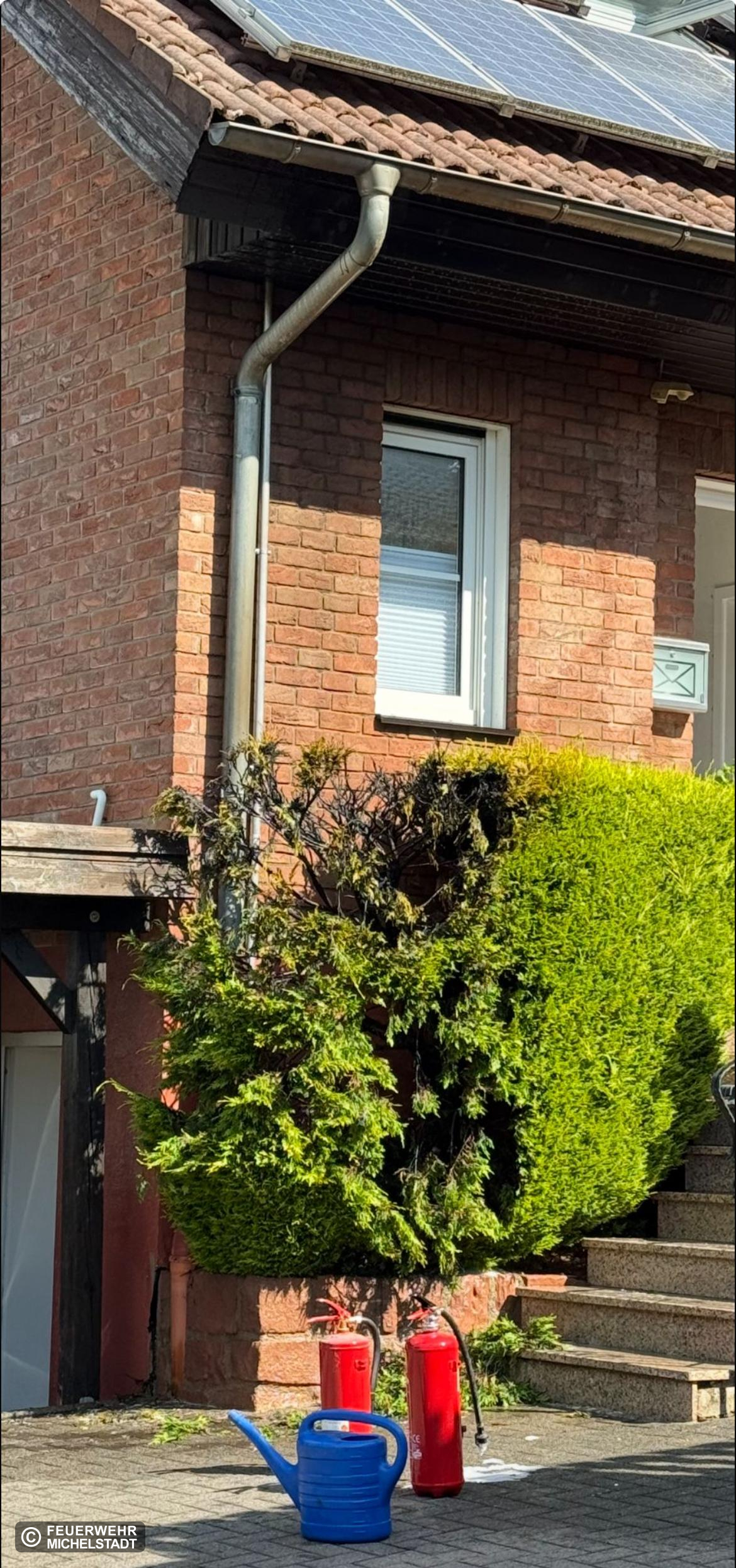 Gemeldet war eine Hecke im Vollbrand direkt an einem Gebäude. Während des Ausrückens wurde uns von der Leitstelle mitgeteilt, dass das Feuer auf das Gebäude übergreifen würde. Vor Ort war die Hecke bereits abgelöscht. Das verrauchte Gebäude wurde mittels Druckbelüfter belüftet. Der betroffene Dachbreich wurde zur Kontrolle geöffnet, hier keine Feststellung. Eine Person wurde vom Rettungsdienst behandelt.