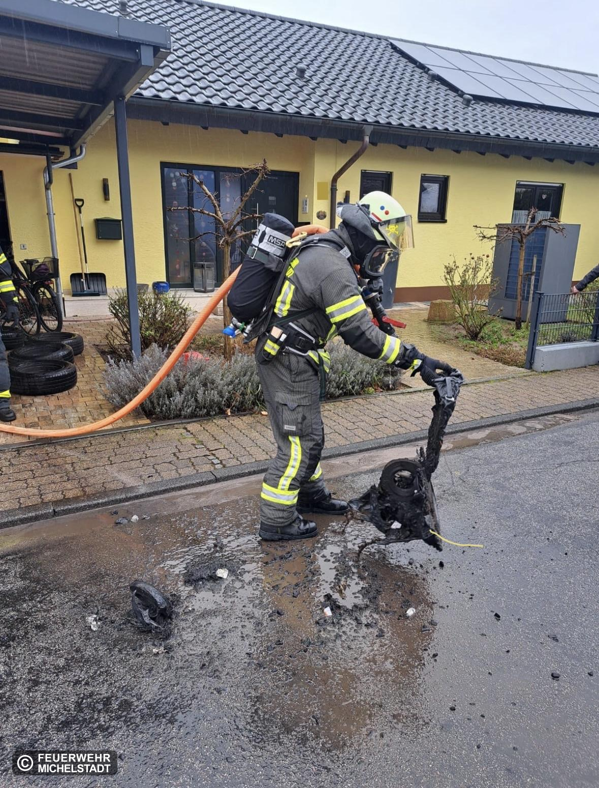 Gemeldet war ein Brand in einer Garage. Durch einen Bewohner wurden vor unserem Eintreffen bereits erste Löschversuche unternommen. Wir löschen den Brand mit einem Trupp unter Atemschutz und einem C-Rohr ab.