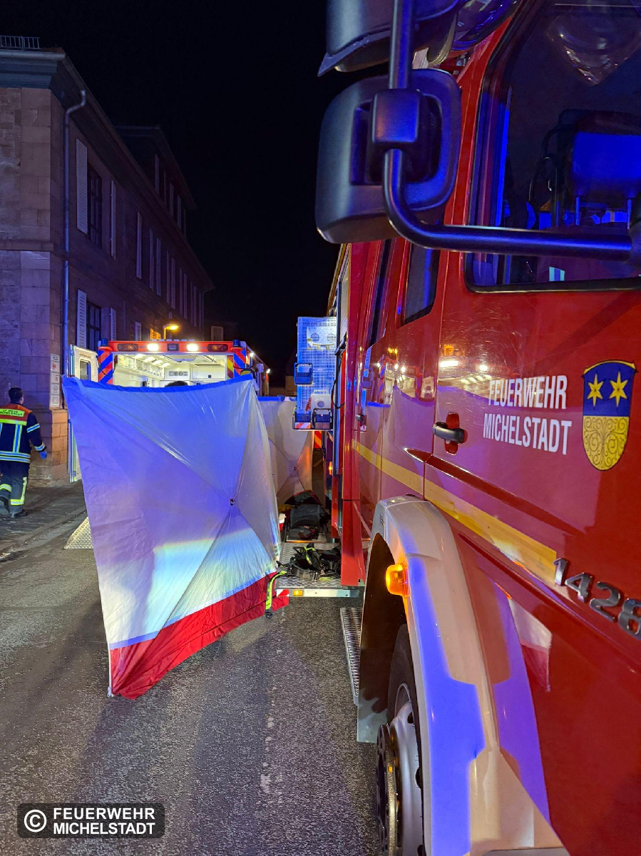 Im Erdgeschoss eines Wohnhauses hat sich eine adipöse Person befunden, welche zur medizinischen Versorgung durch den Rettungsdienst in ein Krankenhaus verbracht werden musste. Sie wurde mit einem Tragetuch auf die Schwerlasttrage der Drehleiter gehoben, die Treppe heruntergetragen und an den Rettungsdienst übergeben. Zudem wurde ein Sichtschutz aufgestellt und die Straße gegen den fließenden Verkehr abgesichert.