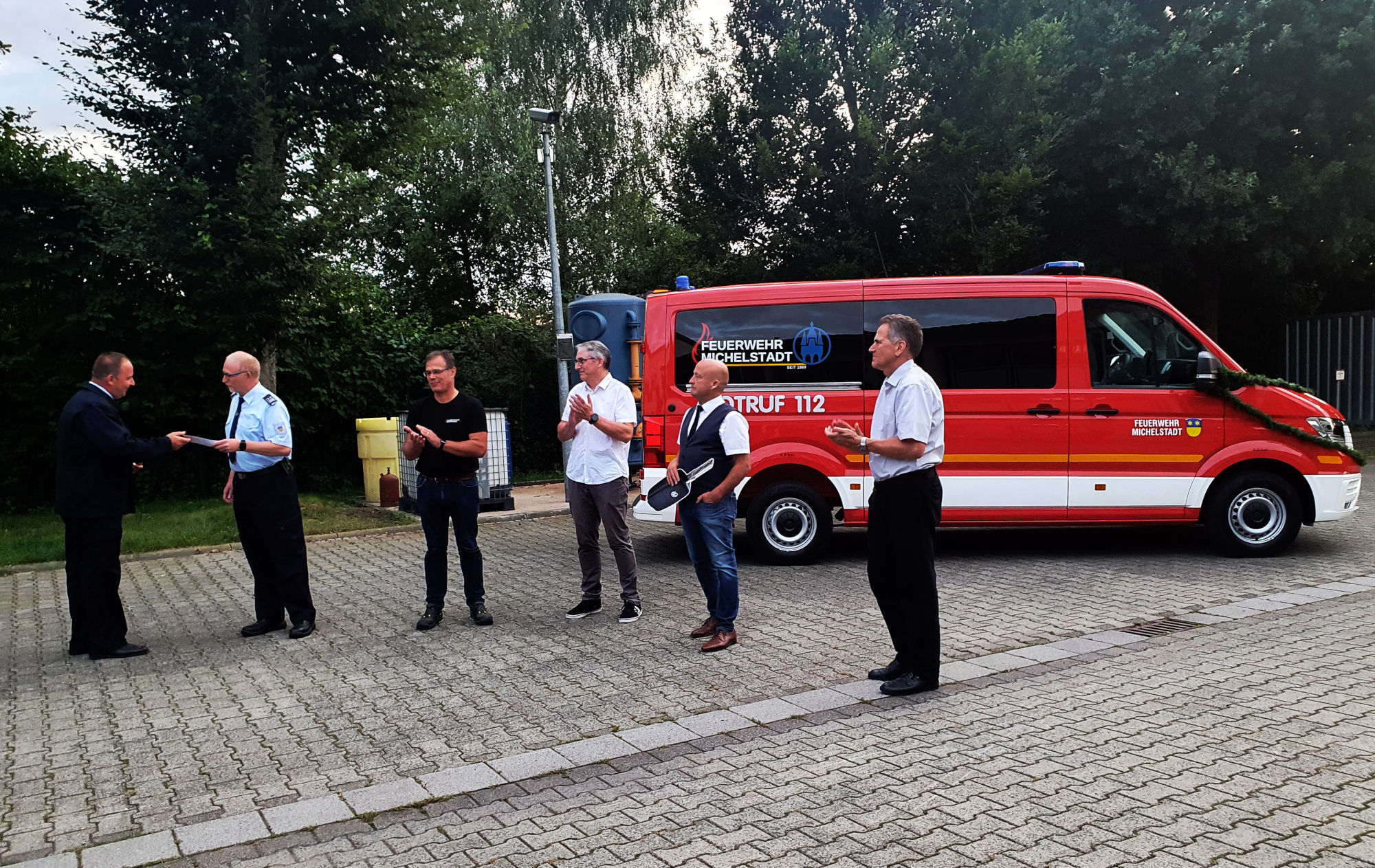 Das neue Fahrzeug ersetzt den nun 24 Jahre alten MTW und wurde komplett aus Vereinsmitteln beschafft. Der Vorsitzende Stefan Uhrig berichtete über die Planungs- und Beschaffungsphase, welche bereits im Jahr 2020 starteten. Danach übernahmen Stadtbrandinspektor Jürgen Obier, und für die städtischen Gremien Bürgermeister Stephan Kelbert sowie Stadtverordnetenvorsteher Andreas Klar, das Fahrzeug offiziell in den Einsatzdienst. Als Vertreter des Kreisfeuerwehrverbands Odenwaldkreis wünschte Kreisbrandmeister Michael Treusch den Michelstädter Einsatzkräften gute Fahrt.