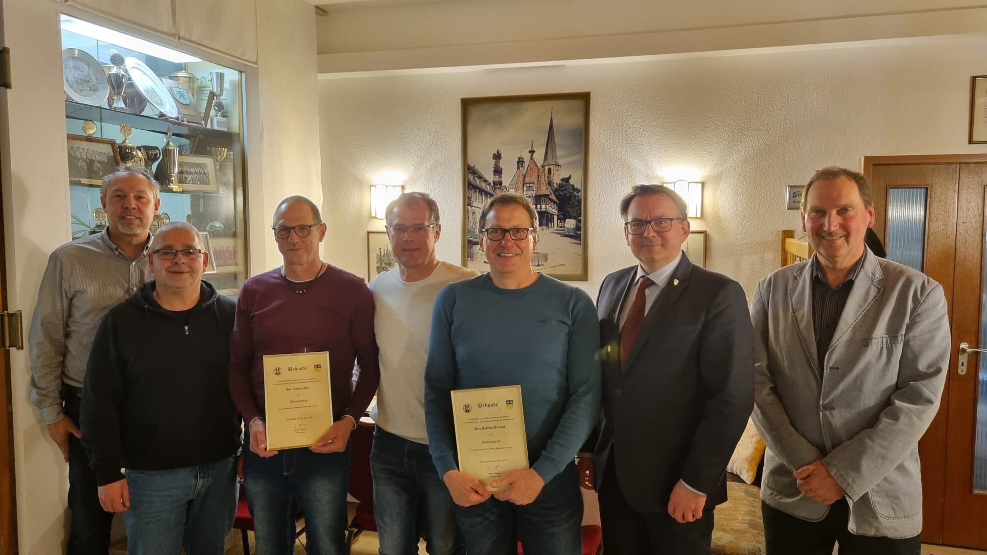 Die Kameraden Reiner Mohr und Andreas Brunner wurden für ihr langjähriges Engagement für die Feuerwehr Michelstadt zu Ehrenmitgliedern ernannt.