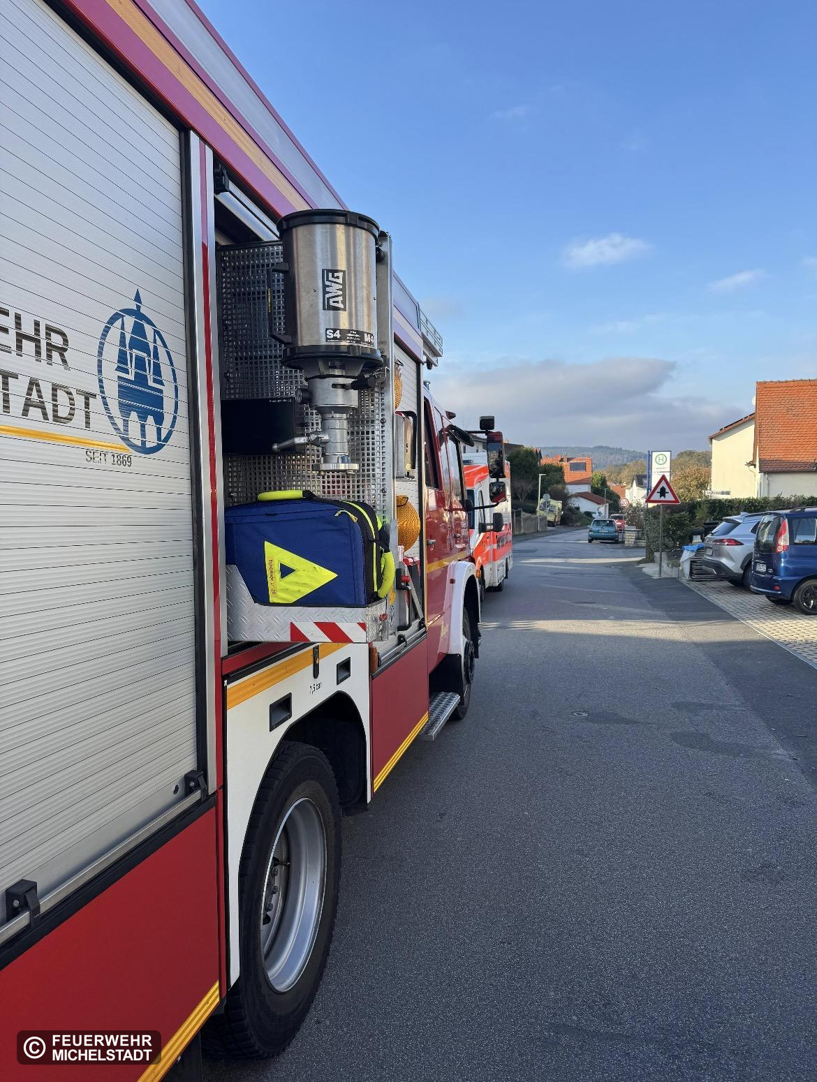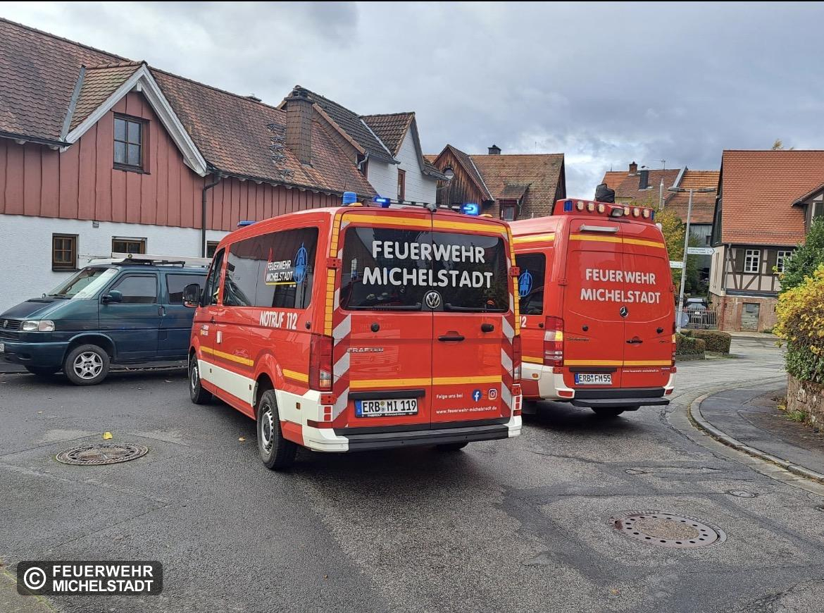 eingesetzte Kräfte Feuerwehr Michelstadt +++ Rettungsdienst +++ Notarzt +++ Polizei +++ Stellv. Stadtbrandinspektor