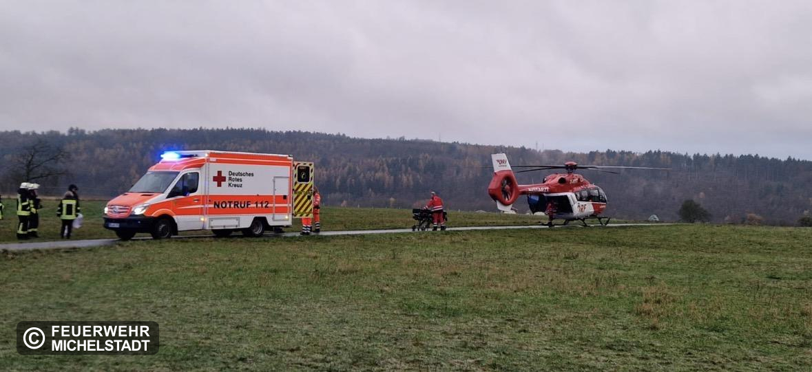eingesetzte Kräfte Feuerwehr Michelstadt +++ Feuerwehr Weiten-Gesäß +++ Rettungsdienst +++ Notarzt +++ Rettungshubschrauber