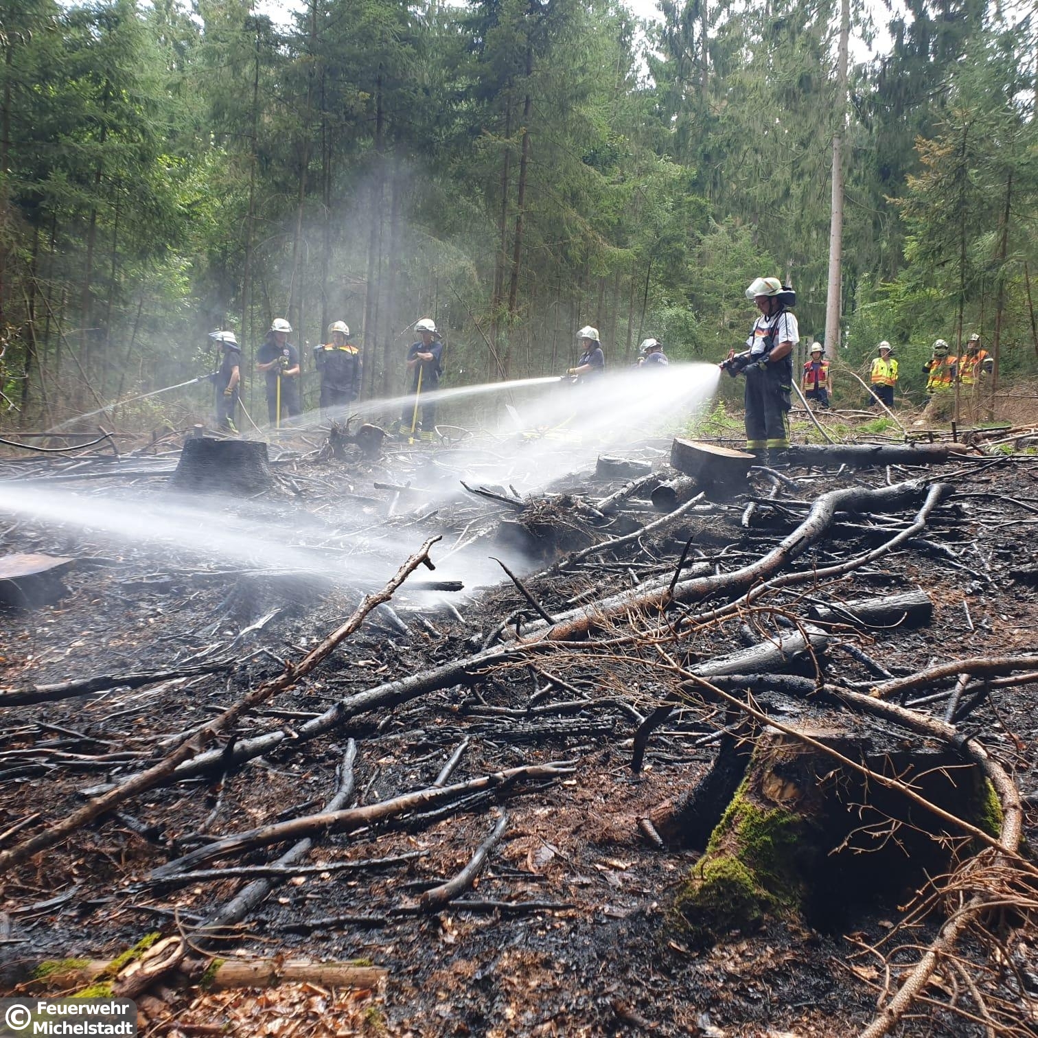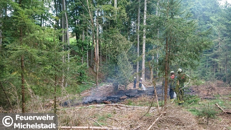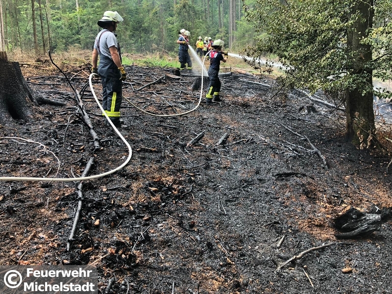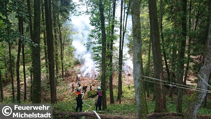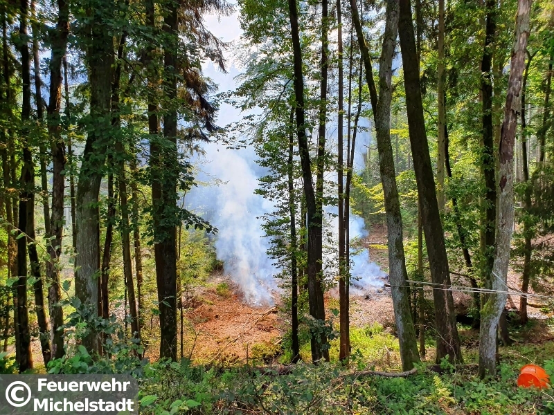 Auf einer Fläche von circa 30x30 Metern brannte der Waldboden. Zusammen mit der Feuerwehr Erbach löschten wir den Brand mit insgesamt 5 D-Rohren ab. Anschließend führten wir Nachlöscharbeiten durch und kontrollierten den betroffenen Bereich mit der Wärmebildkamera.