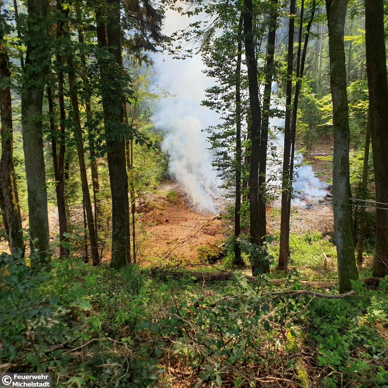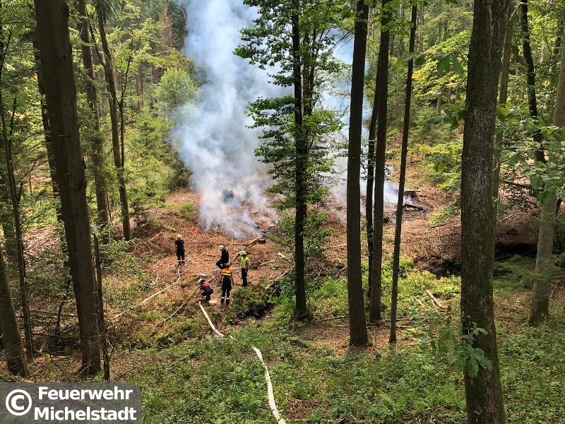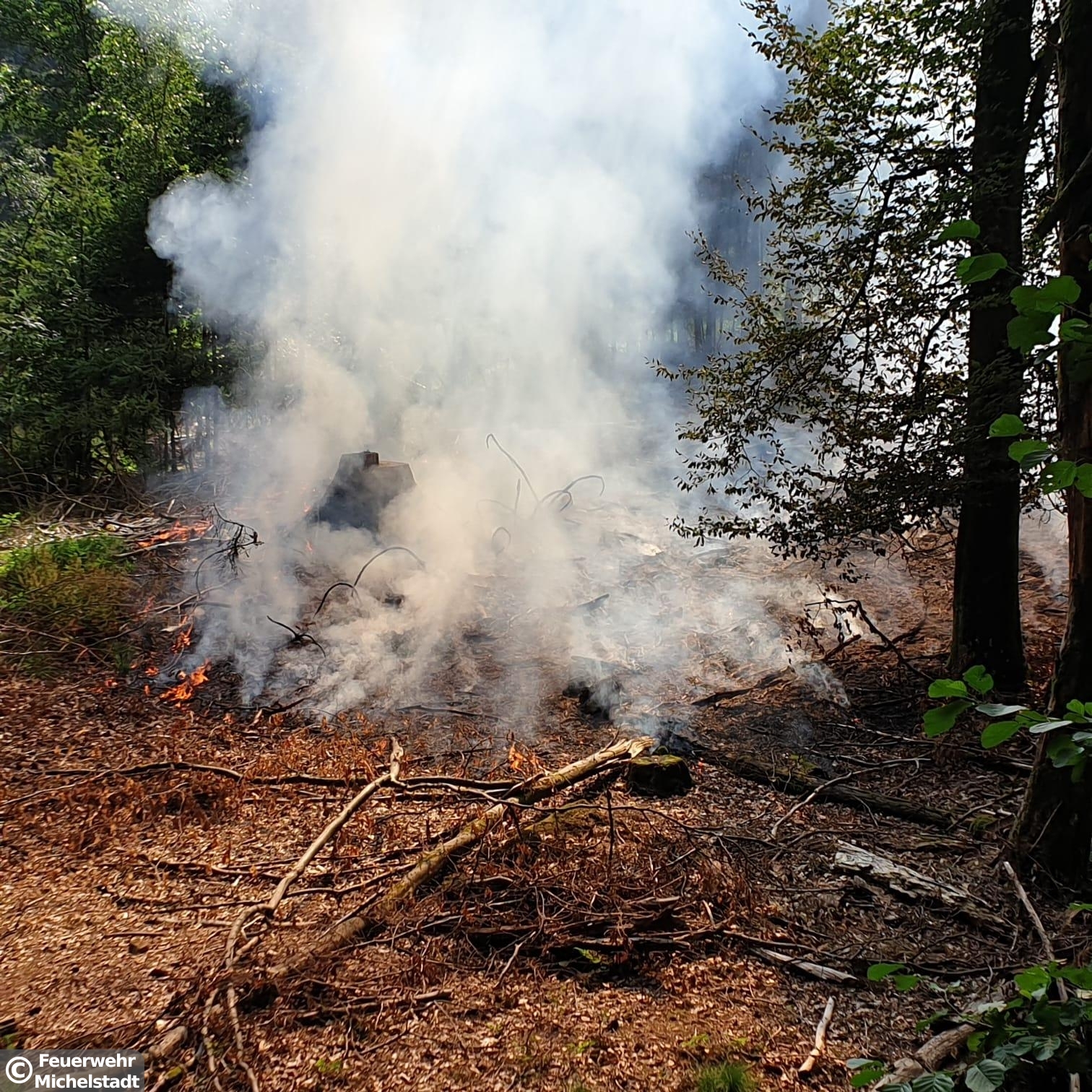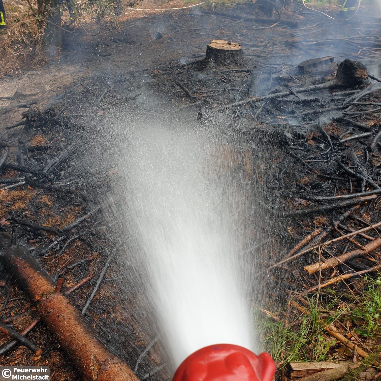 Auf einer Fläche von circa 30x30 Metern brannte der Waldboden. Zusammen mit der Feuerwehr Erbach löschten wir den Brand mit insgesamt 5 D-Rohren ab. Anschließend führten wir Nachlöscharbeiten durch und kontrollierten den betroffenen Bereich mit der Wärmebildkamera.