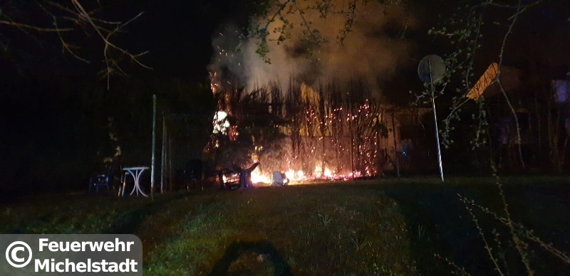 Durch den Einsatz von Anwohnern mittels eines Gartenschlauches und 2 C-Rohren der Feuerwehr, konnte das Übergreifen des Brandes verhindert und das Feuer gelöscht werden.