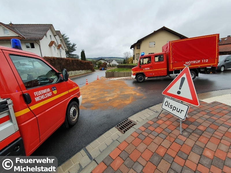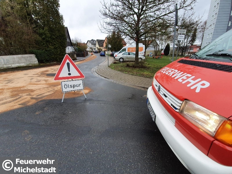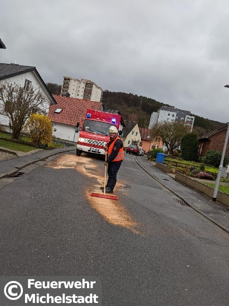 Eine Ölspur erstreckte sich von der Landrat-Hofmann-Straße über die Martin-Luther-Straße in die Friedhofstraße. Wir streuten die Ölspur ab und stellten Warnschilder auf.
