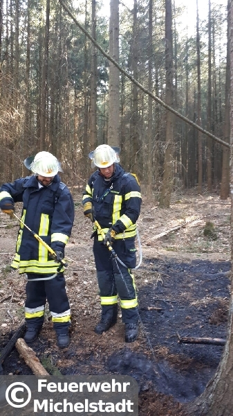 Im Stadtwald hinter dem Friedhof wurde ein Feuer gemeldet. Mit 2 Löschrucksäcken wurde ein schwelender Baumstumpf abgelöscht.