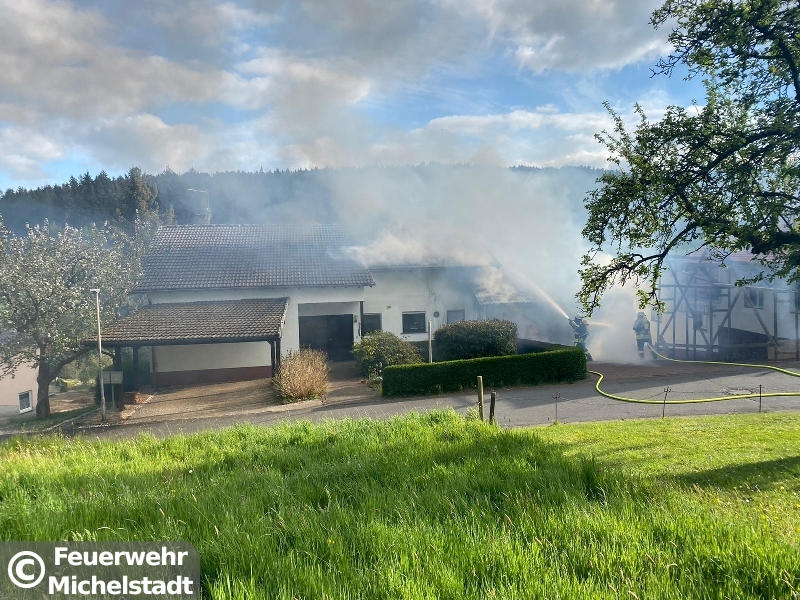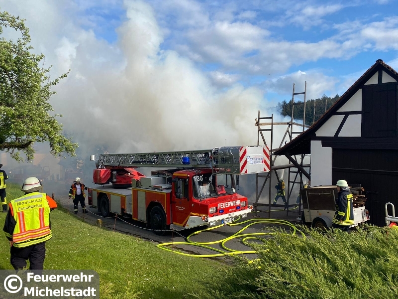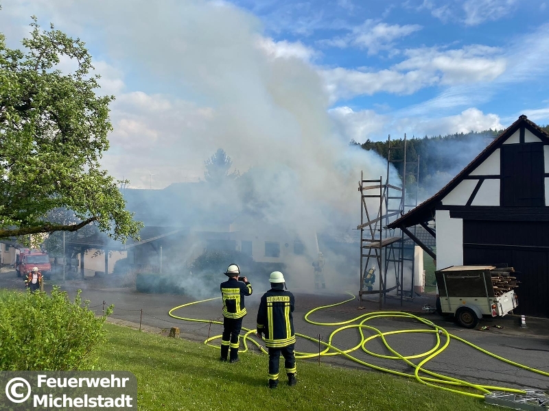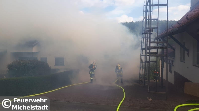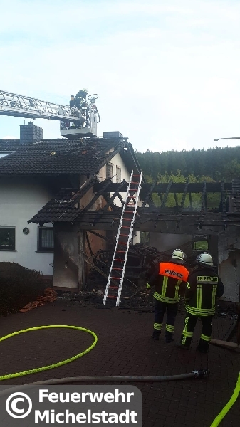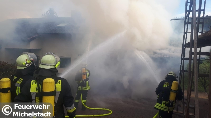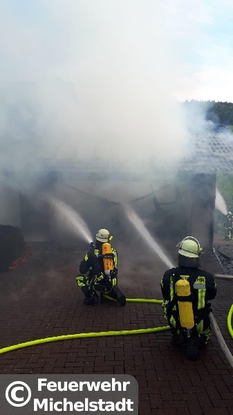 In Unter Mossau stand eine Doppelgarage mit 2 PKW im Vollbrand. Das Feuer drohte auf den Dachstuhl überzugreifen. Neben den Feuerwehren der Gemeinde Mossautal war ein Löschzug der Feuerwehr Erbach im Einsatz. Wir wurden zur Unterstützung mit Atemschutzgeräteträgern alarmiert und stellten an der Einsatzstelle einen Sicherungstrupp und Reserve an Atemschutzgeräteträgern. Durch den Einsatz konnte die Ausbreitung in den Dachstuhl verhindert werden.