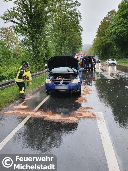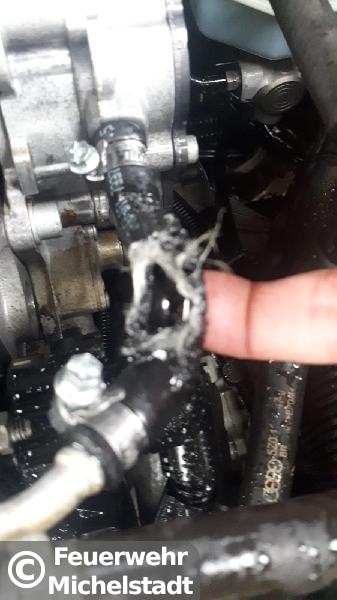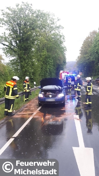 Gemeldet war ein Brand eines PKW. Vor Ort stellte sich heraus, dass es sich nicht um einen Brand, sondern um ausgelaufene Betriebsstoffe handelte. Eine defekte Kraftstoffleitung war hierfür verantwortlich. Vermutlich hatte es durch den Kontakt mit dem warmen Motor zu einer leichten Verrauchung geführt.