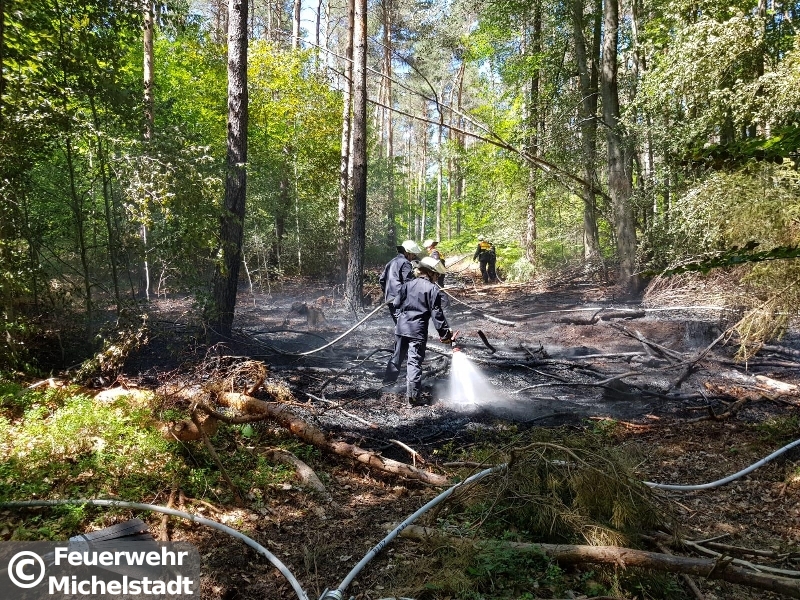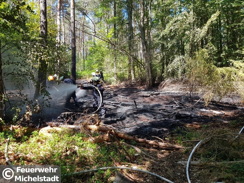Ein Bodenfeuer von ca. 20m x 20m wurde mit 3 D-Rohren gelöscht. Anschließend wurde der Boden mit der Wärmebildkamera kontrolliert und Nachlöscharbeiten durchgeführt.