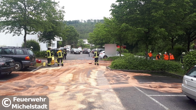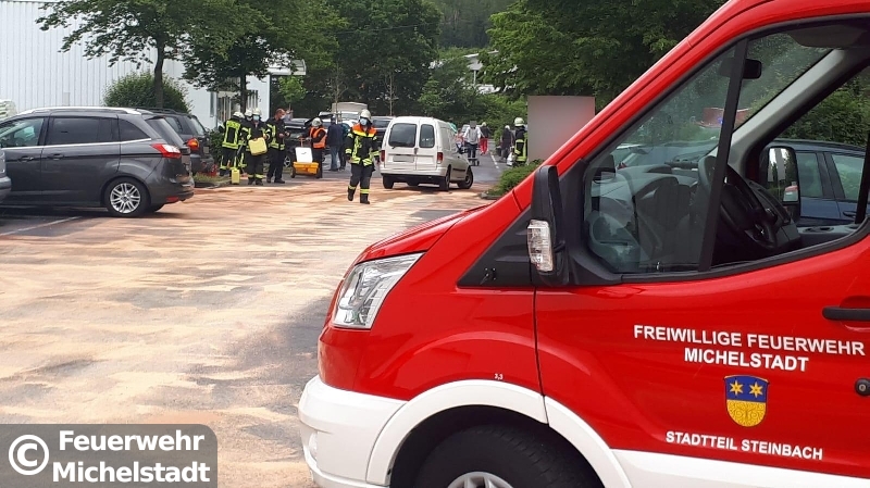 Gemeldet war eine Ölspur in der Abfahrt B45 / Walther-Rathenau-Allee. Nach der Erkundung bestätigte sich die Lage. Zudem waren große Teile eines Parkplatzes betroffen, weshalb die Feuerwehr Steinbach nachalarmiert wurde.