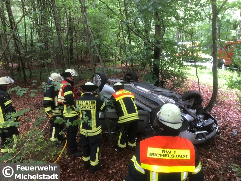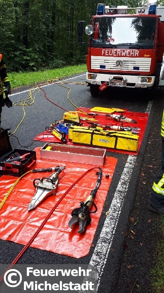 Ein PKW lag im Wald neben der L3349 nach einem Überschlag auf dem Dach und an einem Baum. Der Rettungsdienst und der Notarzt trafen, neben der Feuerwehr Würzberg, zuerst an der Einsatzstelle ein. Die Person war traurigerweise zu diesem Zeitpunkt bereits verstorben. Nach der Freigabe durch einen Gutachter wurde die Person von uns mit Hilfe von hydraulischem Rettungsgerät aus dem Fahrzeug befreit.