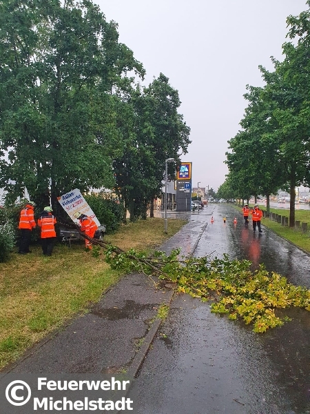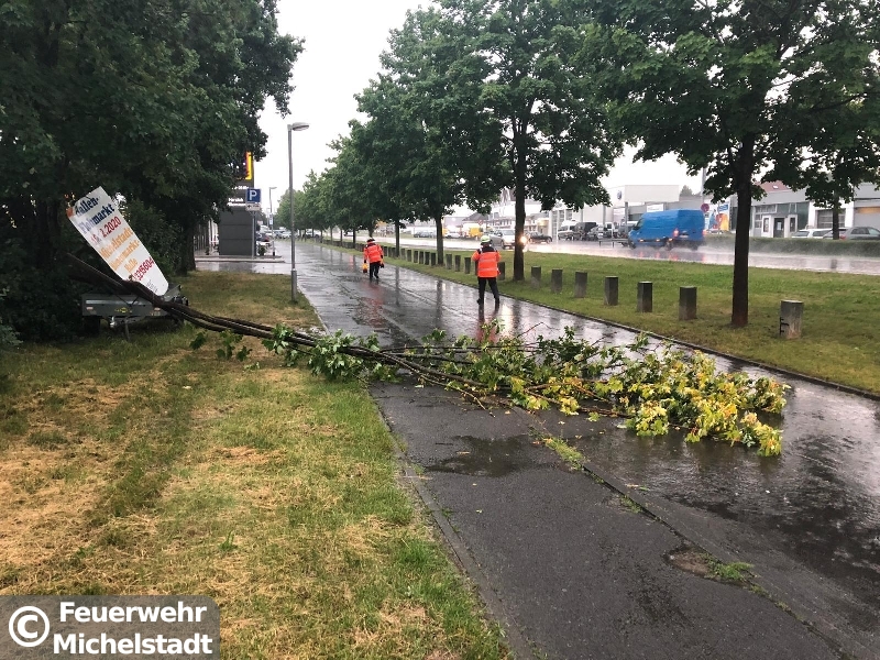 Ein umgestürzter Baum wurde entfernt und die Fahrbahn gereinigt.