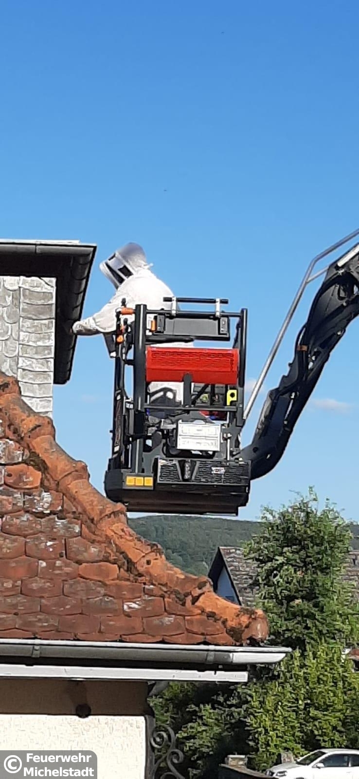 Wir unterstützten mit unserer Drehleiter eine Fachfirma bei der Umsiedlung eines Wespennestes.
