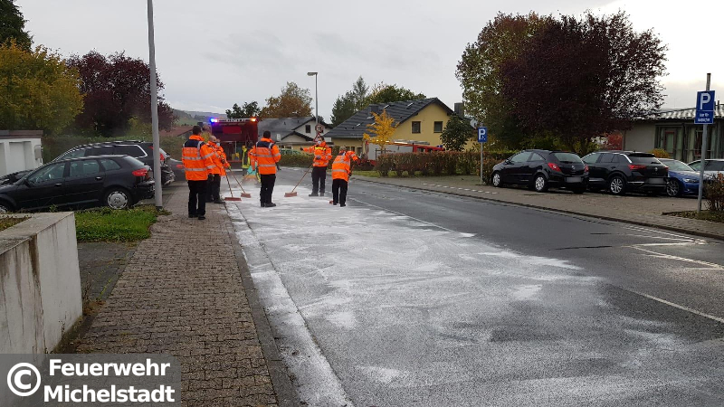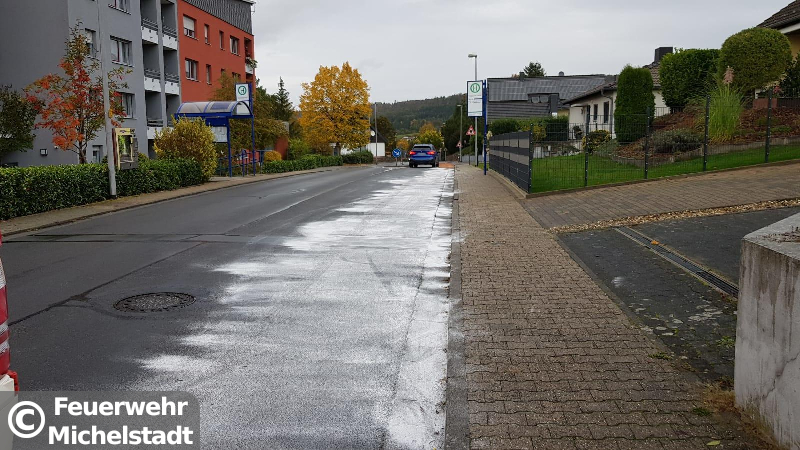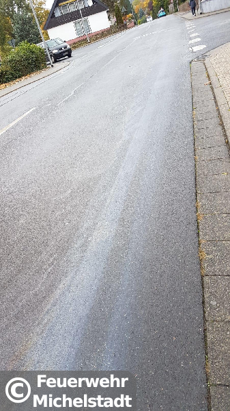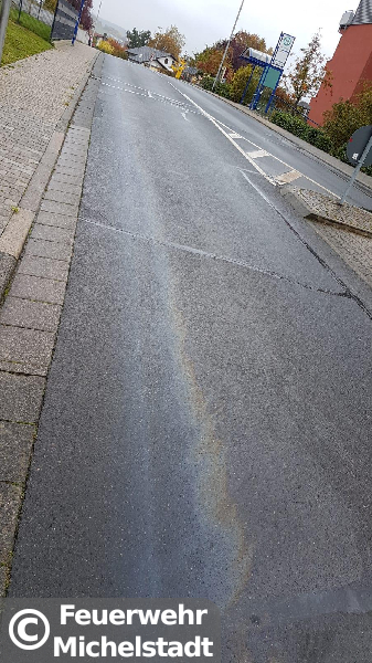 Eine Ölspur erstreckte sich vom Stadtring und die Straße "Am Donnersberg" bis in die Jahnstraße. Wir nahmen das Öl mit Bindemittel auf.