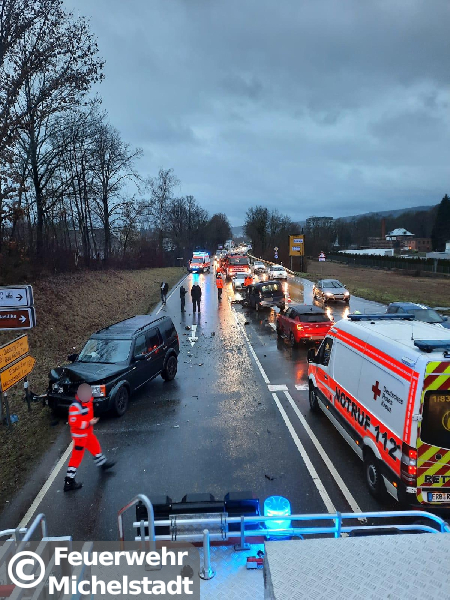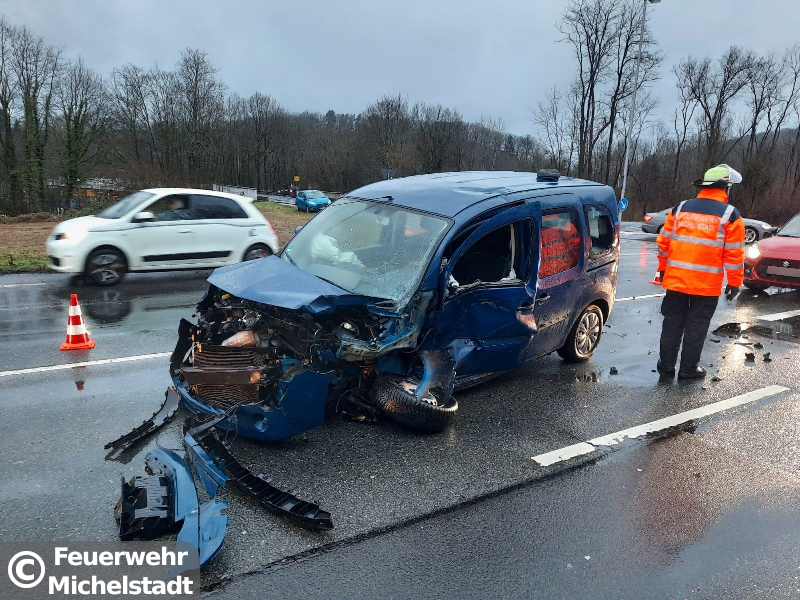 Bei einem Frontalzusammenstoß zweier PKW im Kreuzungsbereich der B45 und Walther-Rathenau-Allee wurden drei Personen verletzt, jedoch glücklicherweise nicht eingeklemmt. Wir sicherten die Einsatzstelle ab und nahmen auslaufende Betriebsmittel auf.