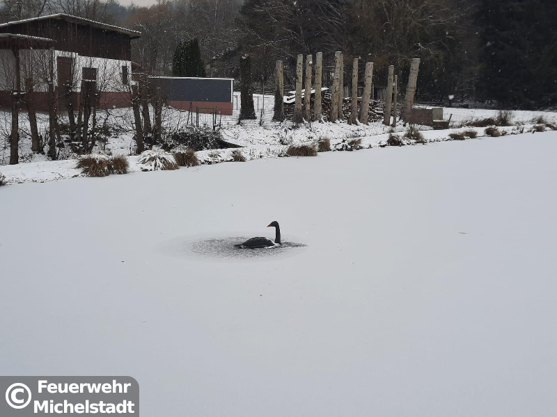 Gemeldet war ein eingefrorener Schwan im Dorfsee in Rehbach. Vor Ort stellte sich heraus, dass es sich um einen Schwan aus Kunststoff handelte. Somit war kein Einsatz erforderlich.