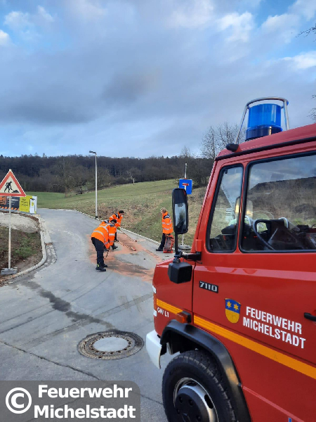 Ein Baustellenfahrzeug hatte Hydrauliköl verloren, welches drohte in einen Kanal zu laufen.