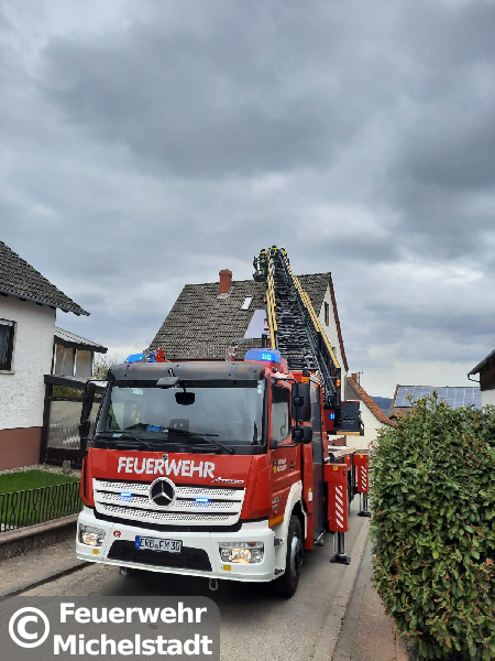 In Momart kam es zu einem Kaminbrand. Wir stellten für die Kameraden unsere Drehleiter zum Kehren des Kamins von oben zur Verfügung.