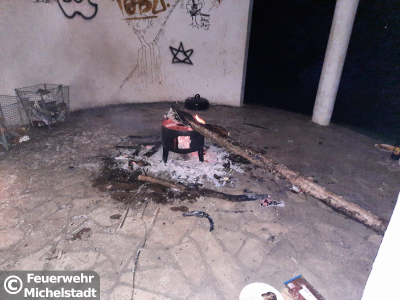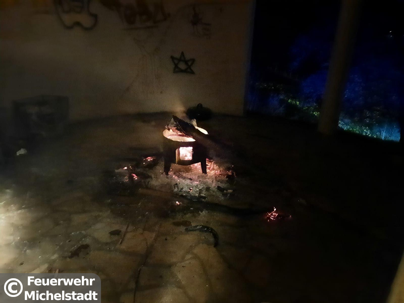 Unbekannte hatten ein Lagerfeuer im Hermannstempel angezündet. Wir löschten das Feuer ab.