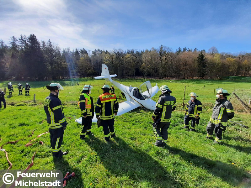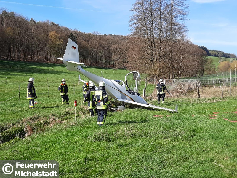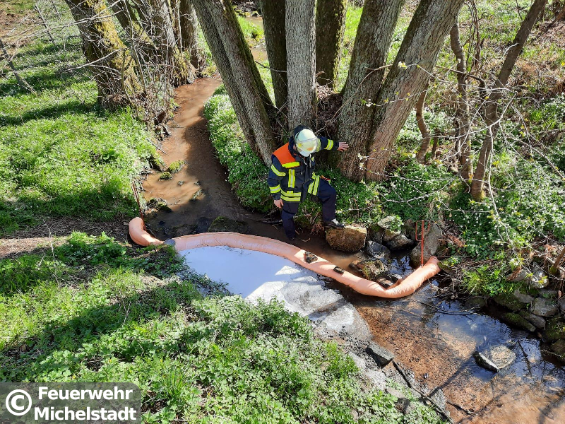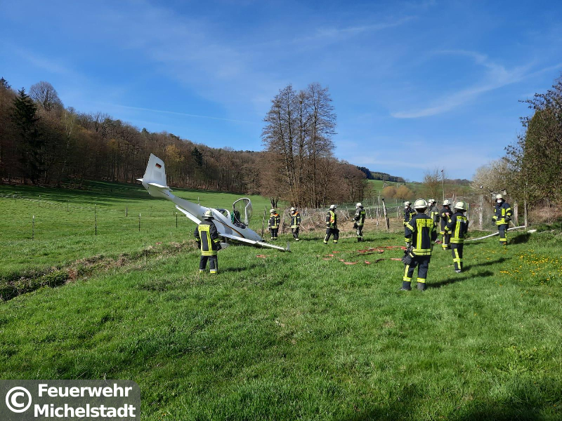 Ein Kleinflugzeug verunfallte bei einer Notlandung. Die Insassen wurden leicht verletzt, konnten sich jedoch selbst aus dem Flugzeug retten. Die Tanks des Flugzeugs wurden bei der Notlandung beschädigt und Treibstoff lief in die Steinbach. Wir setzten Ölsperren auf dem Gewässer und fingen den restlichen Treibstoff mit Wannen und Ölbindemittel auf. Zusätzlich stellten wir den Brandschutz an der Einsatzstelle sicher.