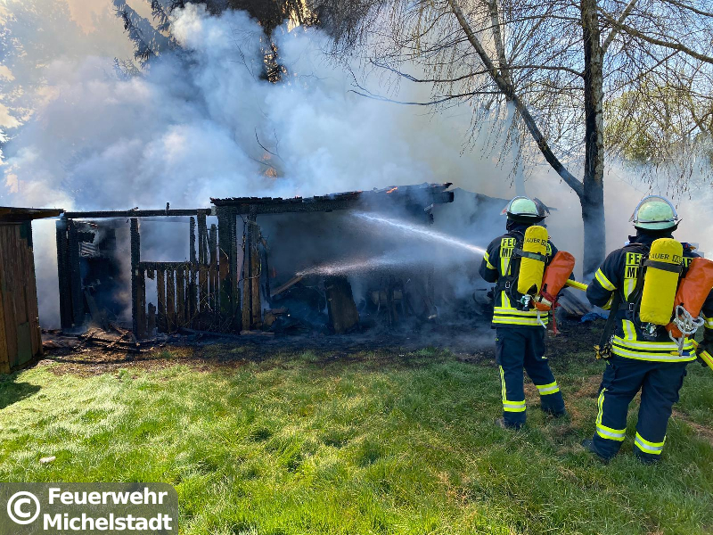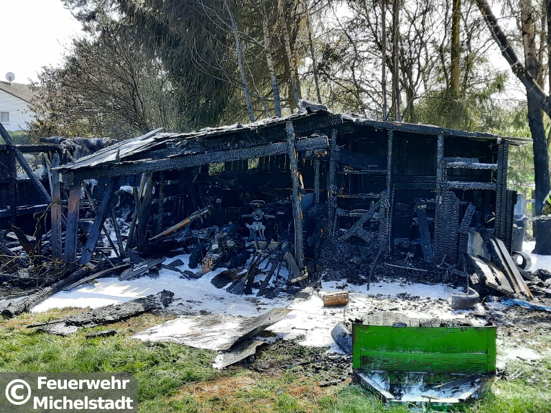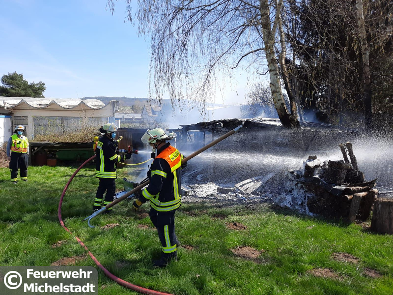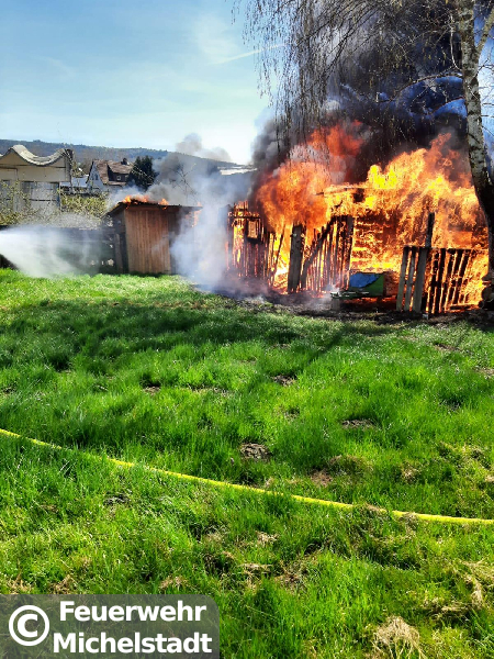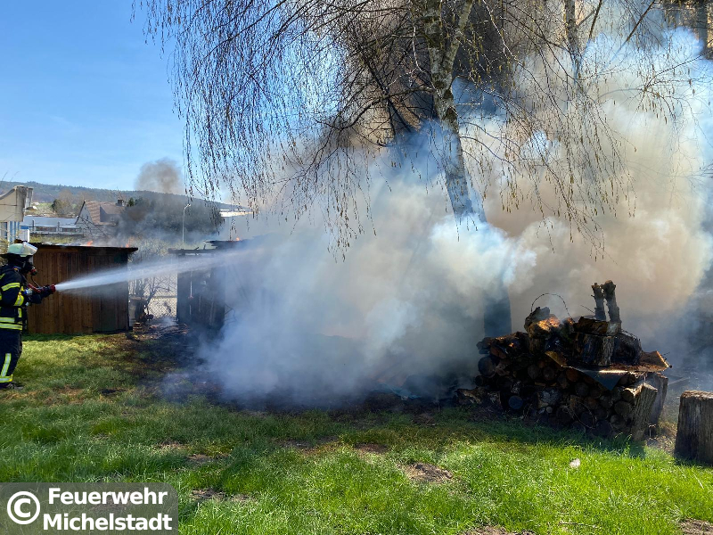 Neben dem ehemaligen TÜV-Gelände stand ein Holzschuppen im Vollbrand. Das Feuer wurde mit 3 C-Rohren unter Atemschutz gelöscht.