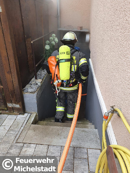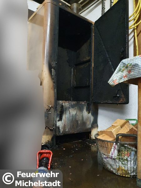 Wir wurden zu einem Kaminbrand alarmiert. Vor Ort war tatsächlich eine starke Rauchentwicklung aus dem Kamin erkennbar, allerdings wurden wir schnell durch den Hausbesitzer auf einen Brand im Kellergeschoss aufmerksam gemacht, der für die Rauchentwicklung verantwortlich war. Dort brannte ein Räucherofen in voller Ausdehnung. Wir löschten den Brand mit einem C-Rohr unter Atemschutz ab.