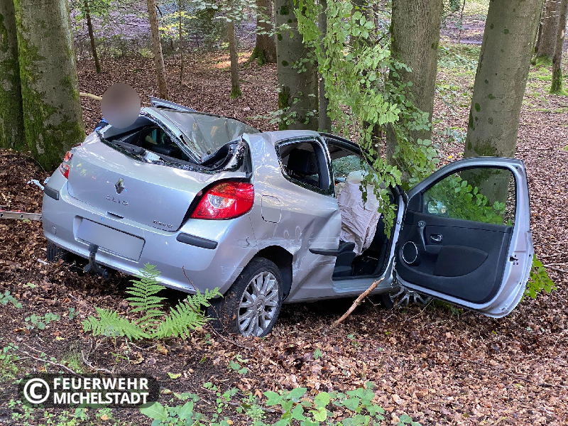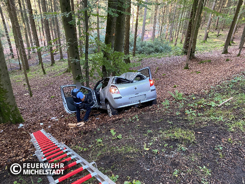 Nach einem Verkehrsunfall musste eine Person aus dem unwegsamen Gelände gerettet werden.