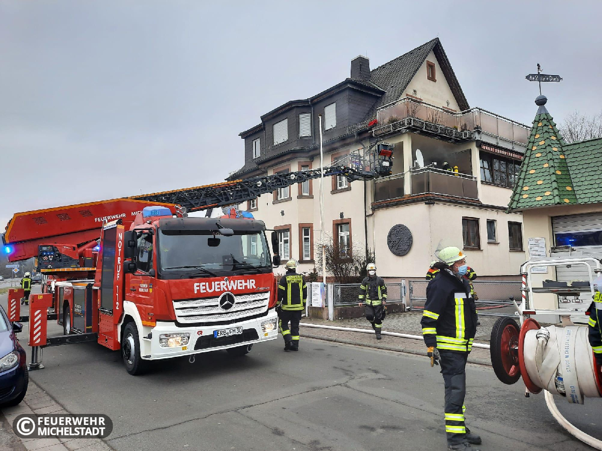 Es kam zu einem Feuer auf einem Balkon eines Mehrfamilienhauses in der Frankfurter Straße. Das Feuer wurde von einem Trupp über den Treppenraum des Gebäudes gelöscht. Durch die Drehleiter wurde eine Anleiterbereitschaft sichergestellt.